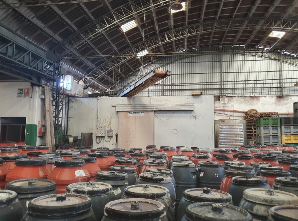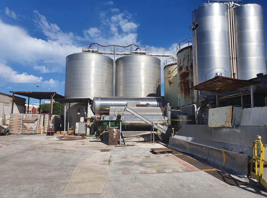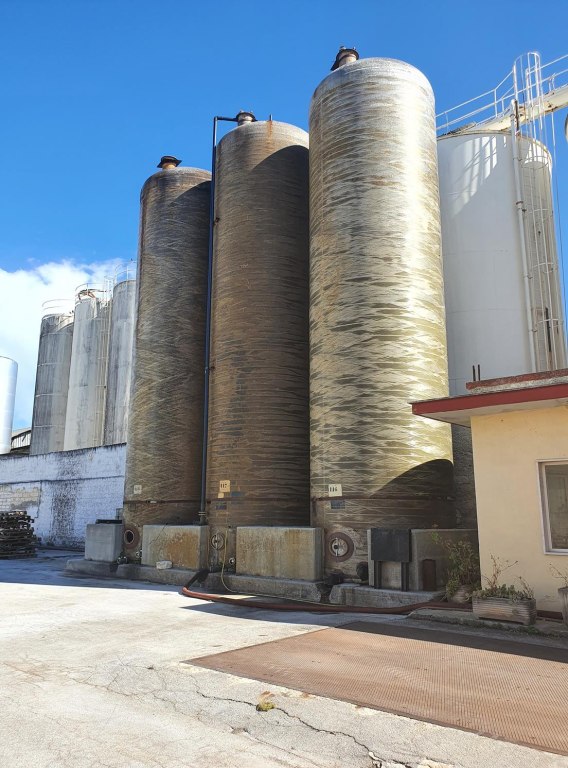 • capannone de circa 1.000 mq dotà de vasche in cemento armato in parte fora tera e in parte interrate. Le vasche gà capacità totale de circa 17.000 hl;