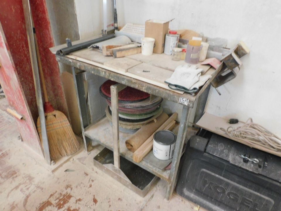 n. 1 tavolinë druri me tre sirtarë, n. 1 tavolinë me dy sirtarë dhe morse, n. 1 mobilje me një derë, n. 1 kampatë e rafteve metalike - rif. 274