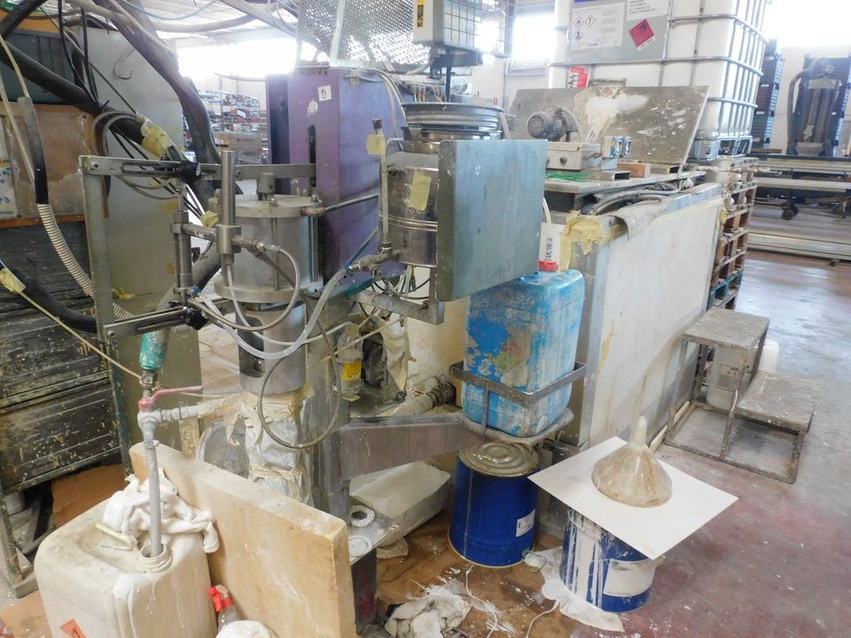n. 1 impiant i shtrirjes Gelcoat me gjatësi rreth 20 metra me impiant për kthimin e formave, n. 1 impiant për përgatitjen dhe dozimin e produktit ELFREN Mod. CI/1AP, matr. 87/00, viti 2000, i markuar CE - rif. 93