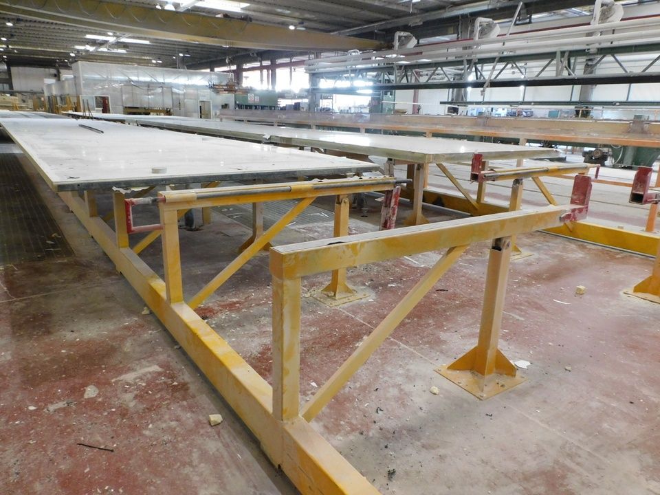n. 5 tavolina për forma me gjatësi rreth 16 metra lëvizëse mbi binarë, të pajisura me rrota për lëvizje longitudinale dhe transversale - rif. 91