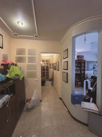 Apartamenti ndodhet në katin e parë dhe hyrja bëhet përmes një dere të blinduar që lidhet me një holl të lidhur drejtpërdrejt me zonën e qëndrimit; menjëherë në të majtë të derës së hyrjes ndodhen një banjo me një anti-banjë shërbimi dhe një dhomë studimi; përmes një çifti korridoreve aksesohet kuzhina dhe zona e gjumit, me dy dhoma gjumi dhe një banjo të dytë; ndërtesa është e pajisur me një ballkon që shtrihet përpara zonës së qëndrimit dhe kuzhinës, nga të cilat ambiente aksesohet.