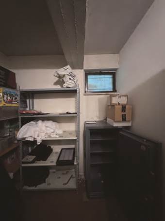 Bodrumi ndodhet në katin S1 dhe është një lokal i vogël me formë pothuajse katrore, i pajisur me një dritare të lartë që shikon përballë jashtësisë së ndërtimit; hyrja bëhet përmes një dere të blinduar.