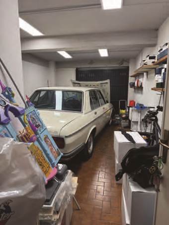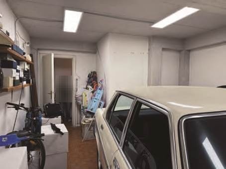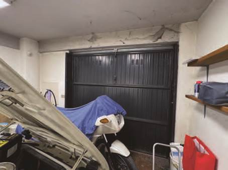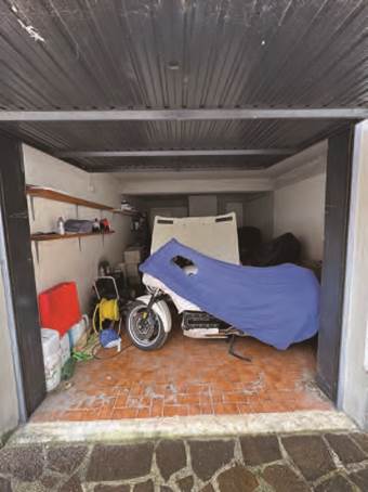Garazhi ndodhet gjithashtu në katin S1 dhe është një ambient me formë drejtkëndëshe, i cili aksesohet këmbësor nga brenda ndërtesës përmes një dere të vendosur përballë bodrumit të pronës së apartamentit dhe me makinë nga oborri përpara ndërtimit, përmes një dere të lëvizshme të vendosur anash shkallës së jashtme.