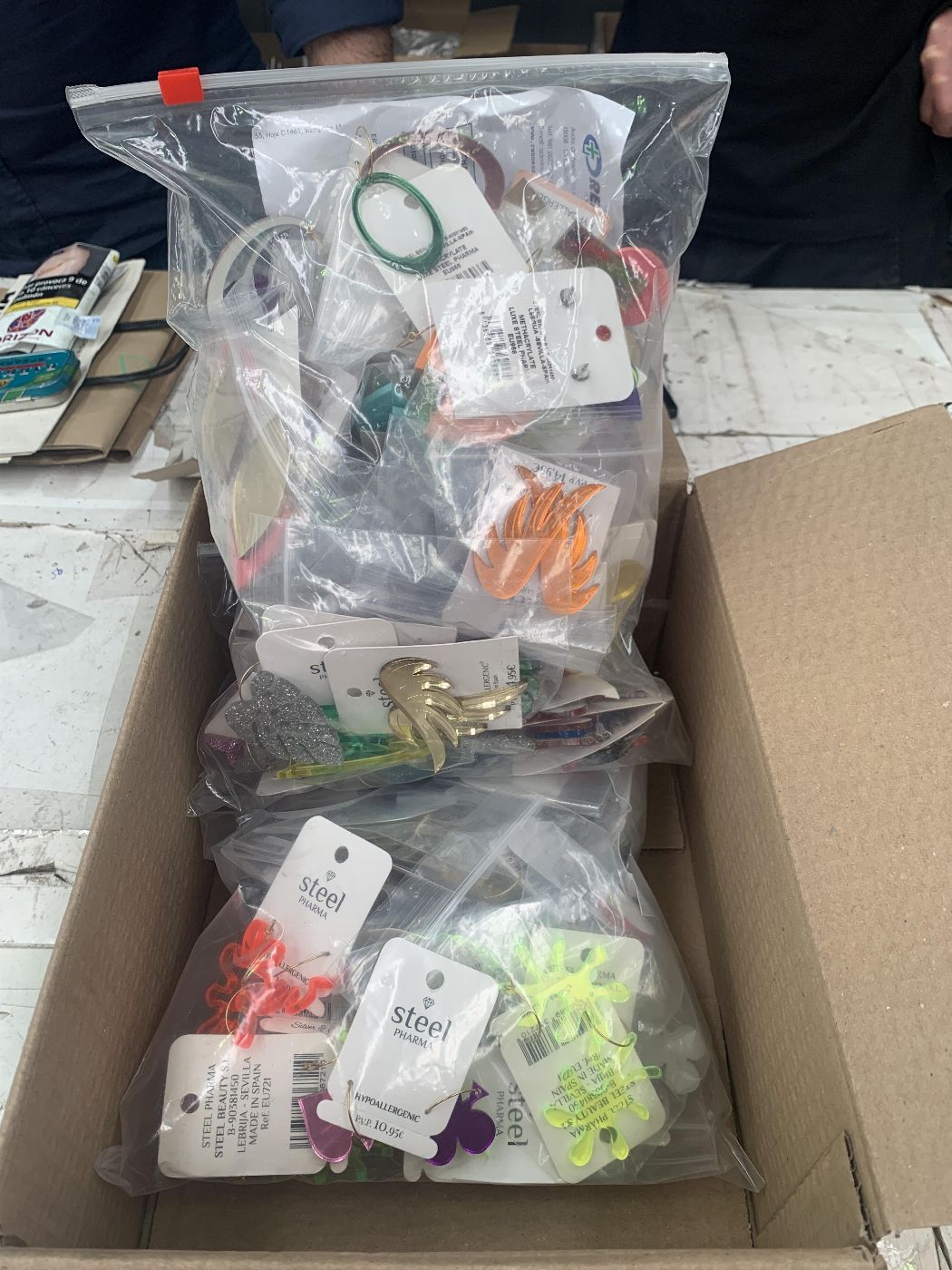 Various intimate hygiene products, cosmetics, manicure, baby items, costume jewelry, jewelry, and accessories.