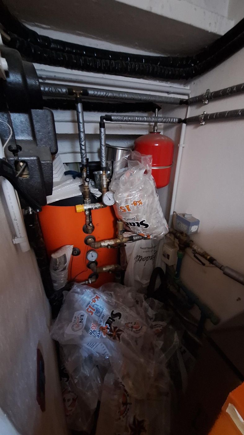 • ground floor: kitchen-living room, entrance, a utility room, and a small room created under the stairs where a pellet boiler is located; the average internal height has been measured at 2.50-2.55 meters.