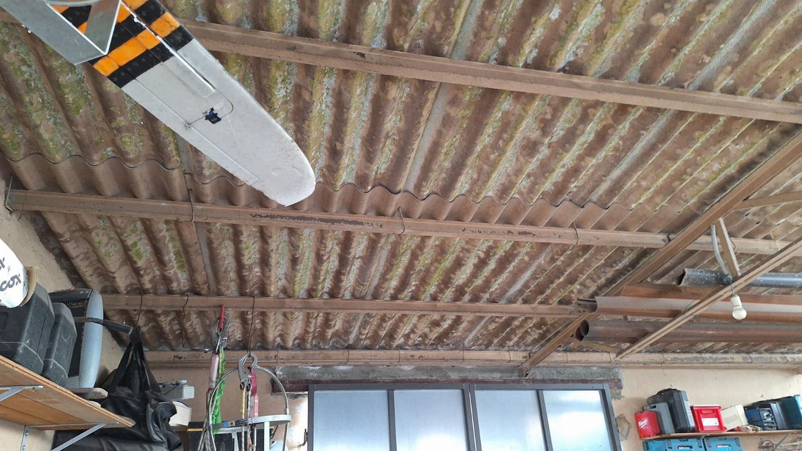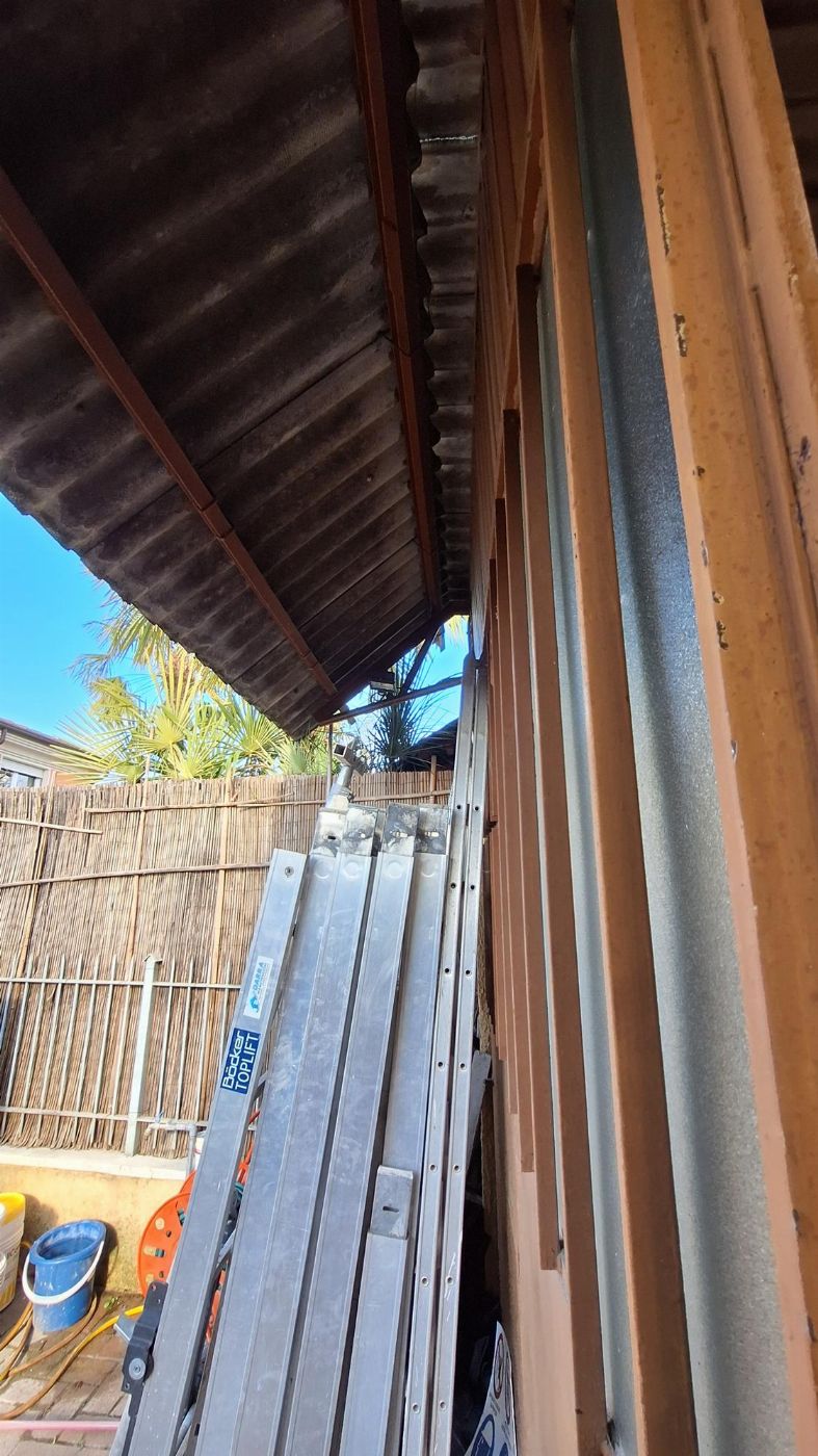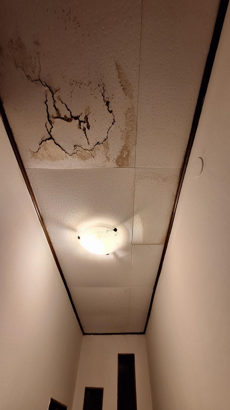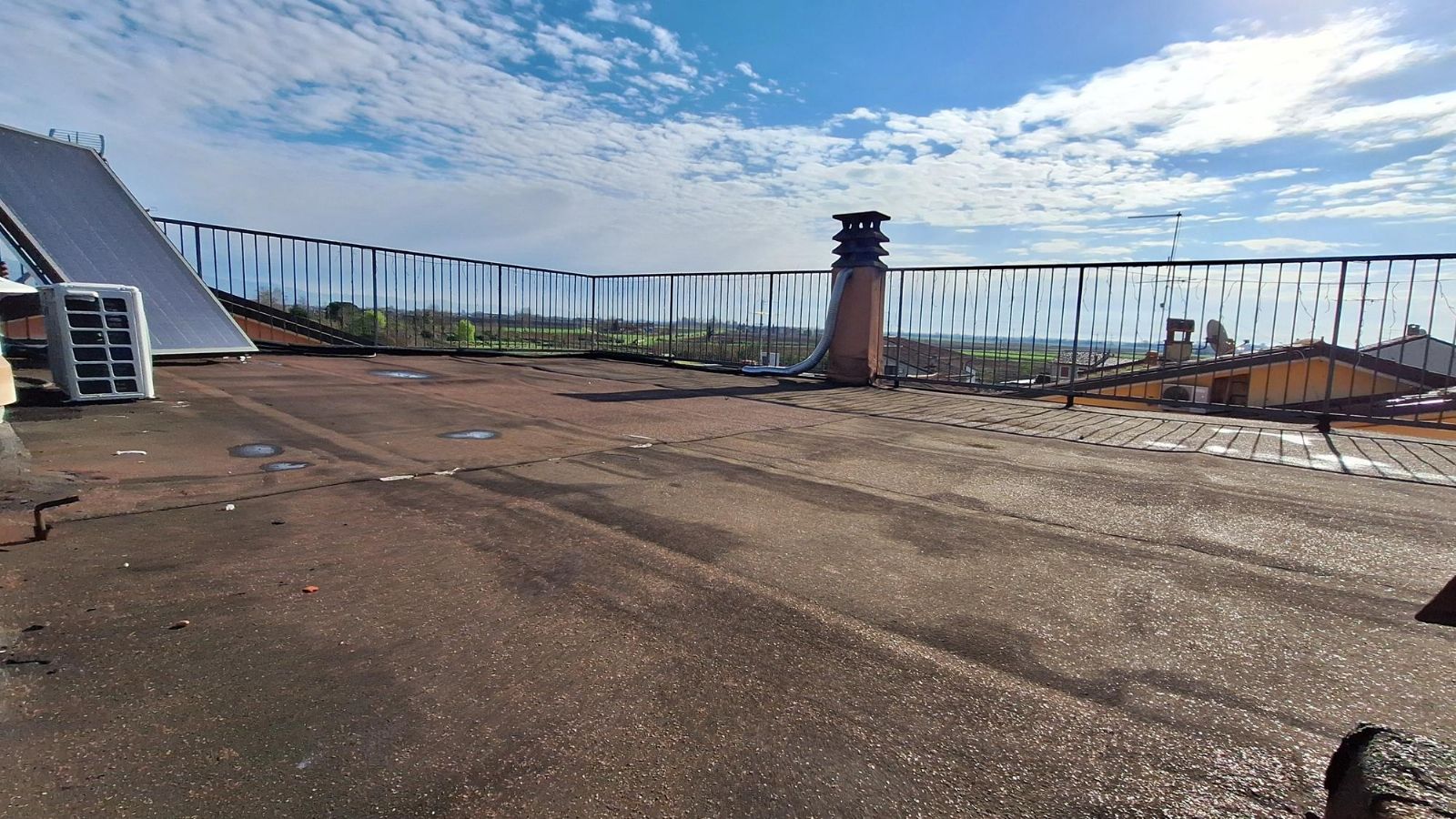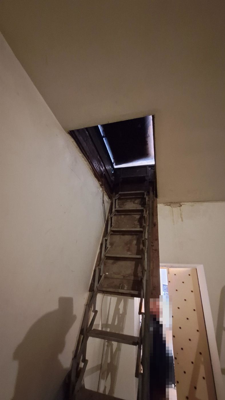 On the second floor in the utility room, there is a retractable metal ladder that allows access to the roof.