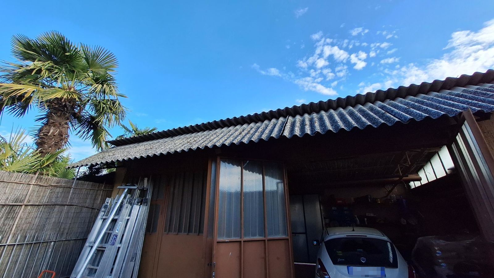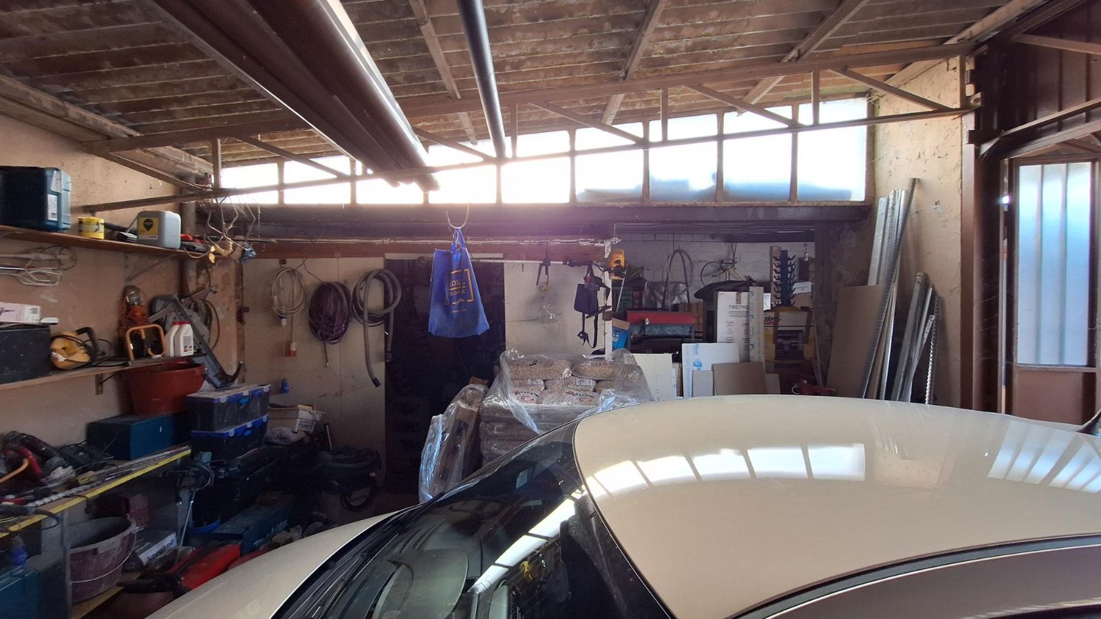 The garage, parcel 201 sub 1, consists of a single room located on the ground floor and a raw room in the basement. The roof is made of asbestos sheets. The unit is part of a building that also includes another unit registered to third parties.