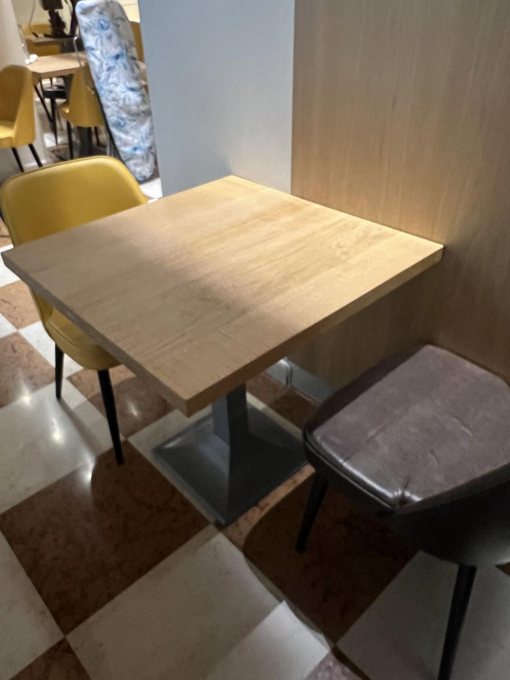 n. 5 Table carrée avec structure en métal, plateau en bois type chêne naturel dimensions environ cm 80x80x80