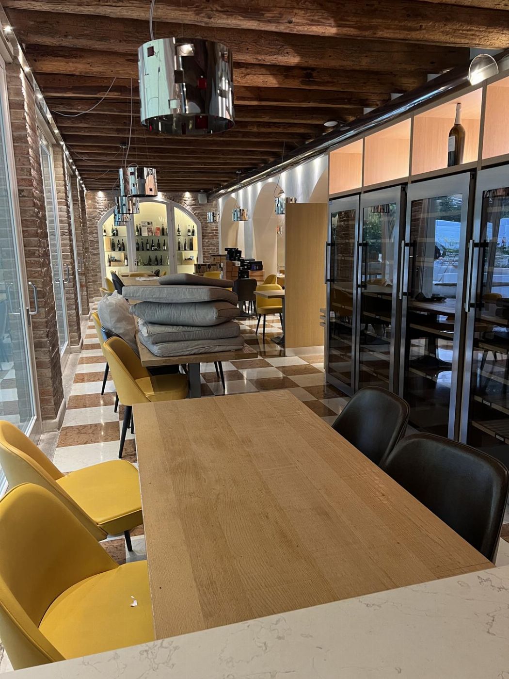 n. 1 Comptoir de service avec structure en bois en stratifié de bois type chêne naturel avec n. 3 tiroirs, n. 3 portes battantes et plateau de couleur blanche dimensions environ cm 150x40x90