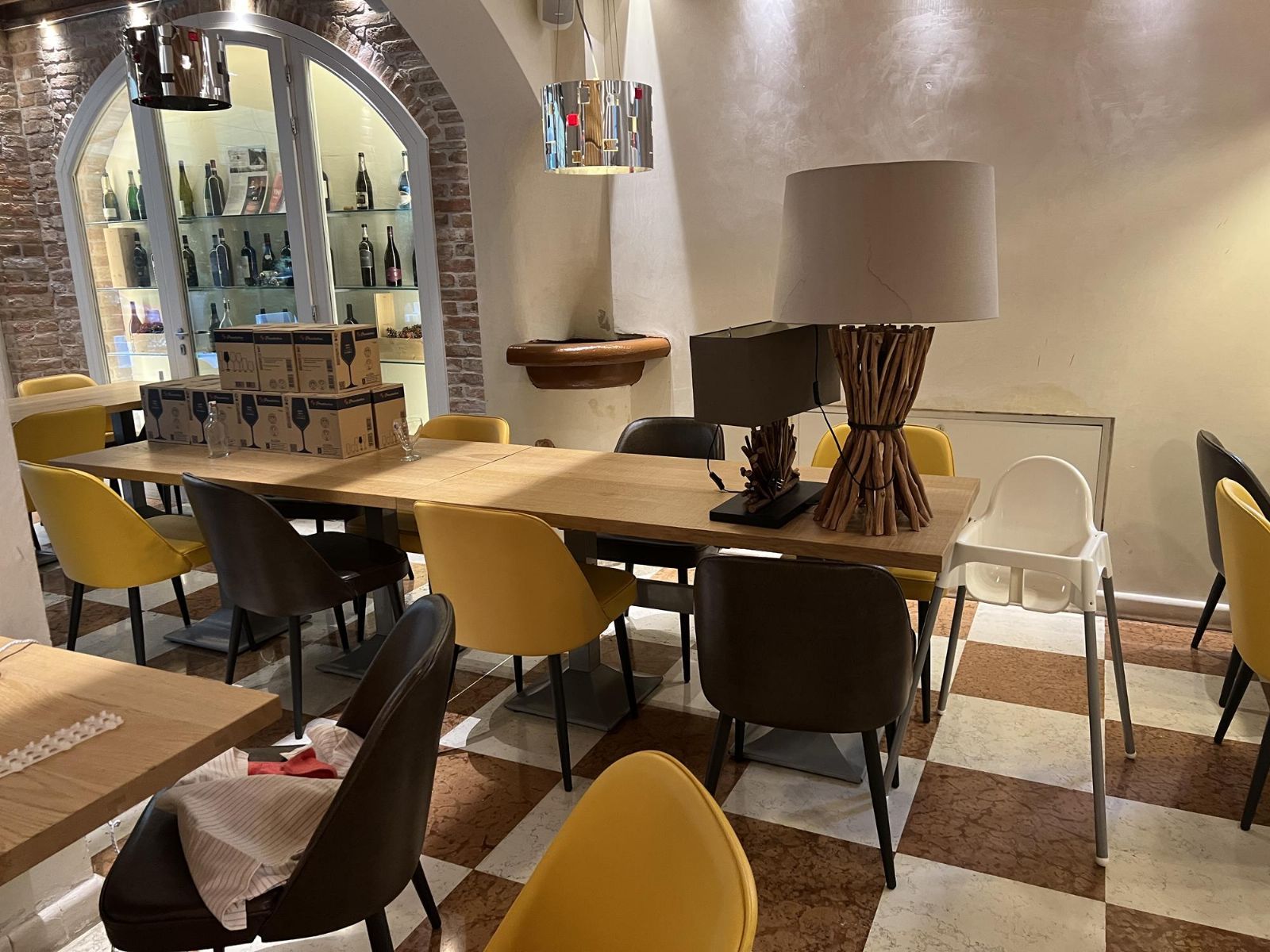 n. 59 Chaise rembourrée avec structure en métal noir et assise rembourrée en simili cuir couleur cuir ou jaune