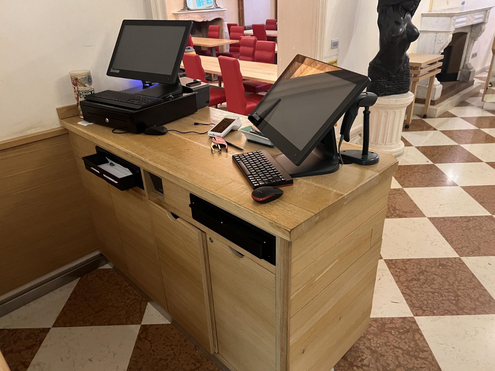 n. 1 Enregistreur de caisse télématique constitué de : terminal POS tout-en-un avec écran tactile modèle APEXA GW, tiroir porte-monnaie, écran bifacial marque EPSON modèle M256B, clavier et souris