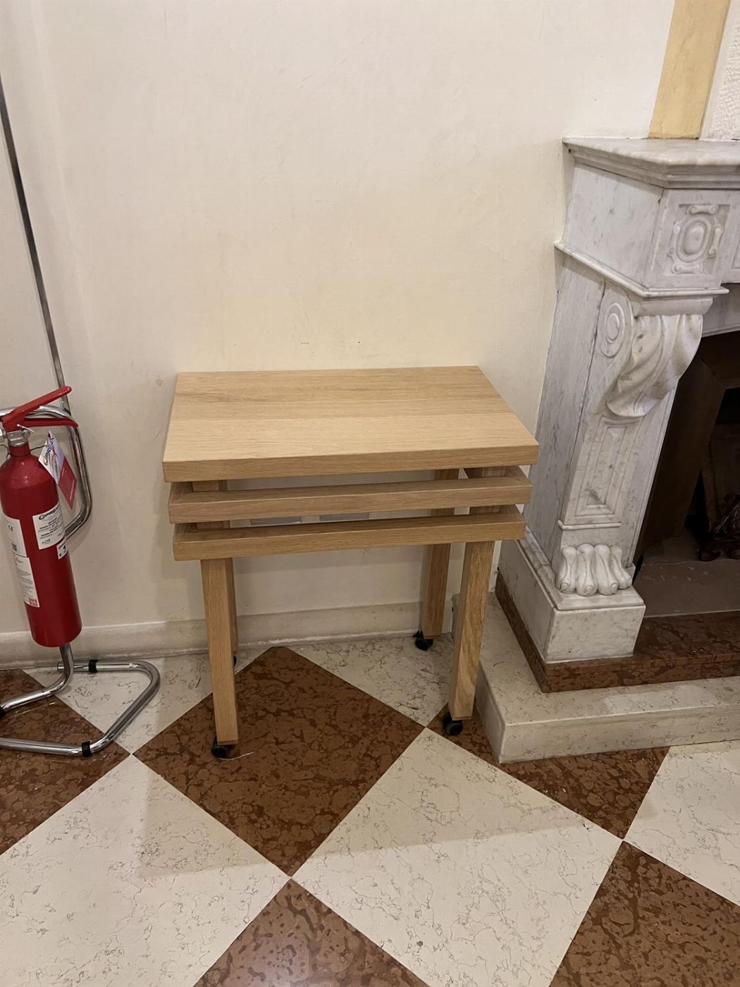 n. 1 Table rectangulaire en bois type chêne naturel avec roues dimensions environ cm 65x40x70