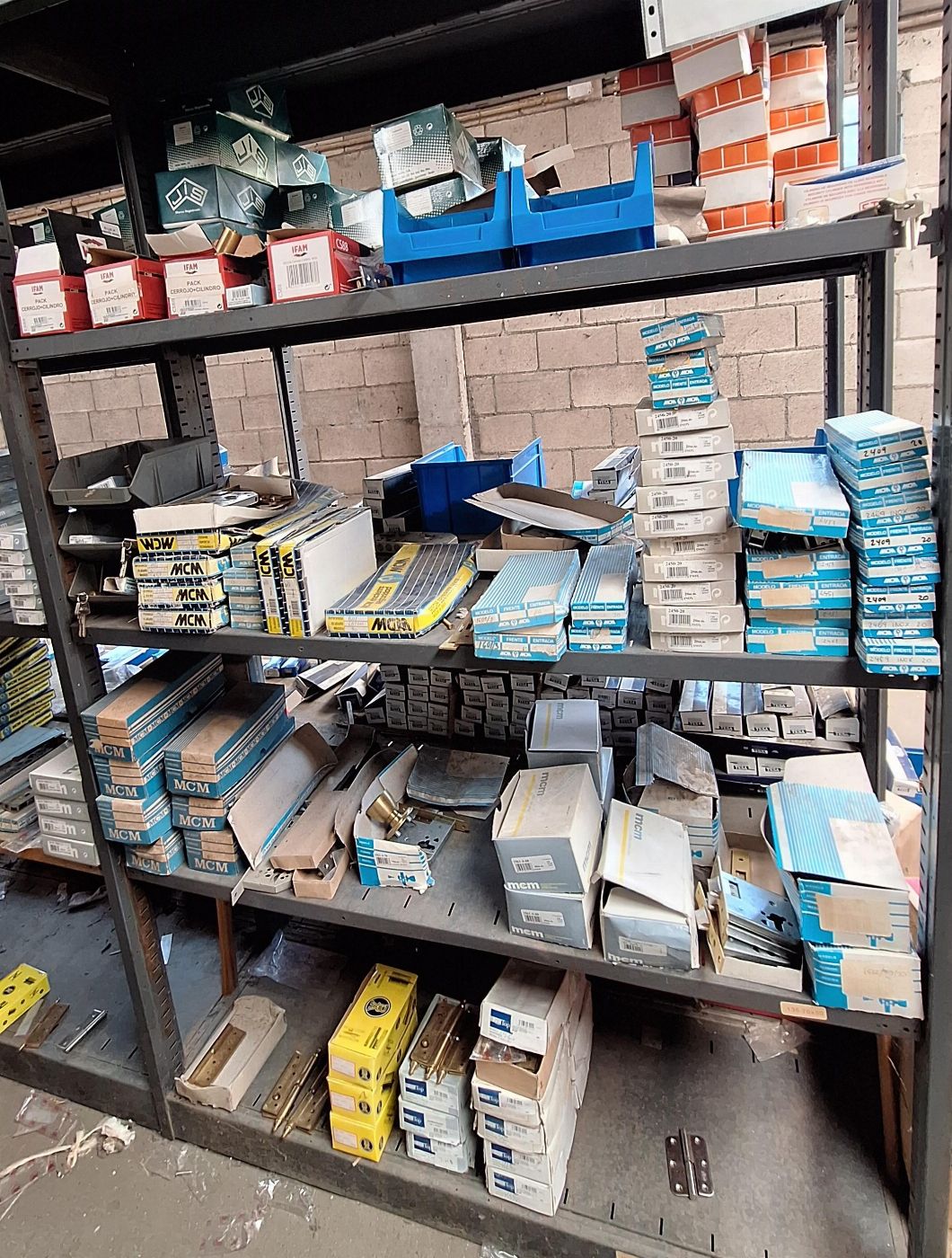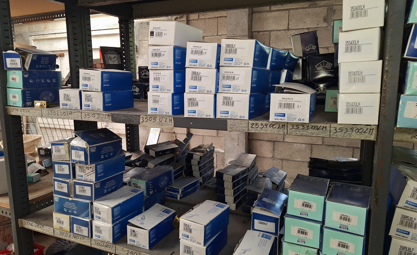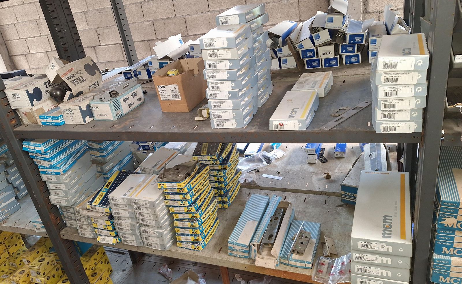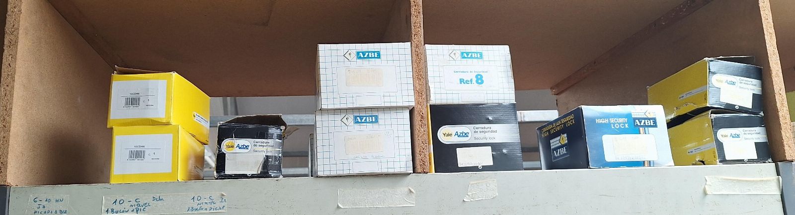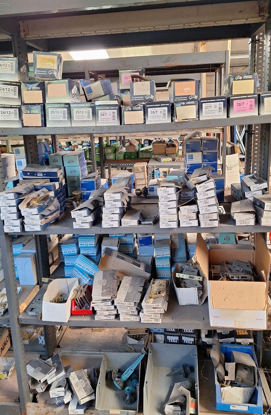 Zárak, kilincsek, hengerek, fogantyúk, pajzsok és különböző márkájú zárkiegészítők (TESA, MCM, Lince, CVL, IFAM stb.), beleértve a felületi, beépített és biztonsági modelleket, valamint lakatokat és lakatfogókat.