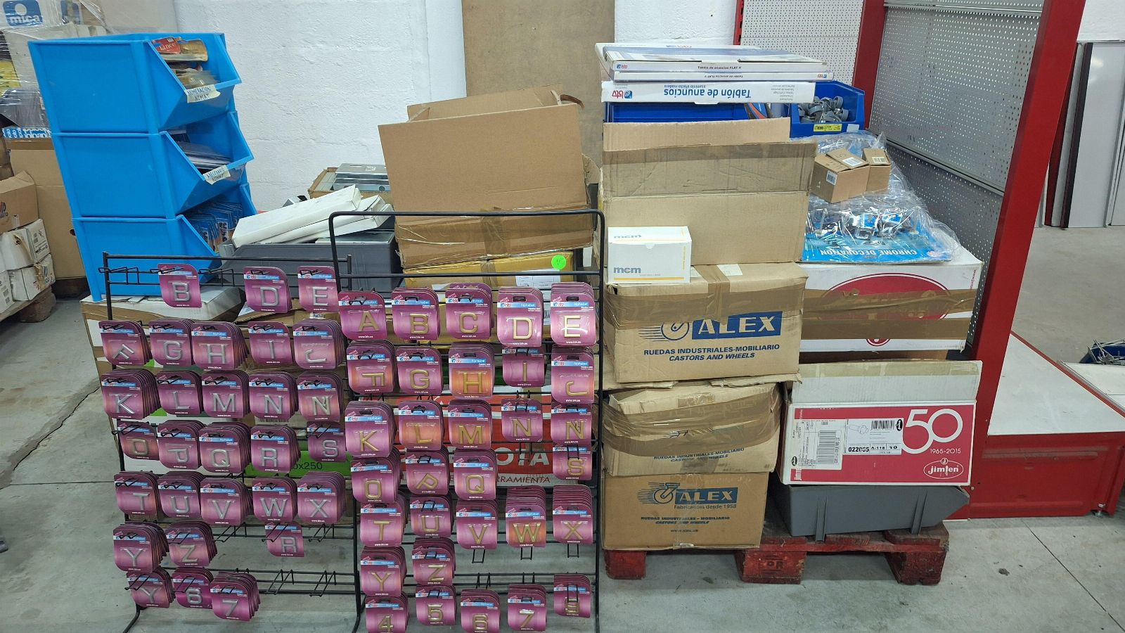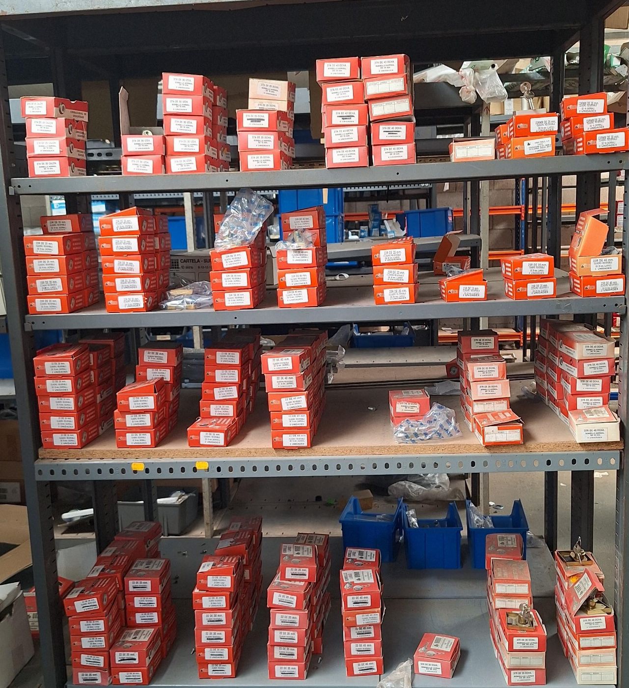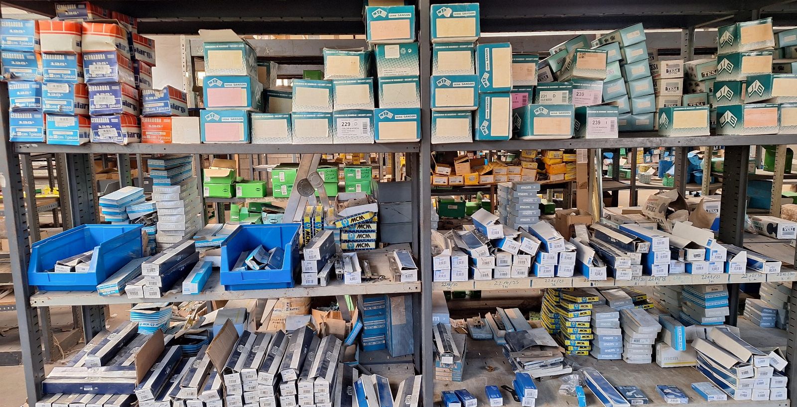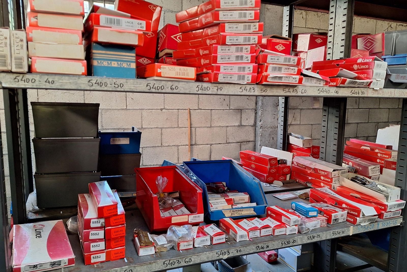 Zárak, kilincsek, hengerek, fogantyúk, pajzsok és különböző márkájú zárkiegészítők (TESA, MCM, Lince, CVL, IFAM stb.), beleértve a felületi, beépített és biztonsági modelleket, valamint lakatokat és lakatfogókat.