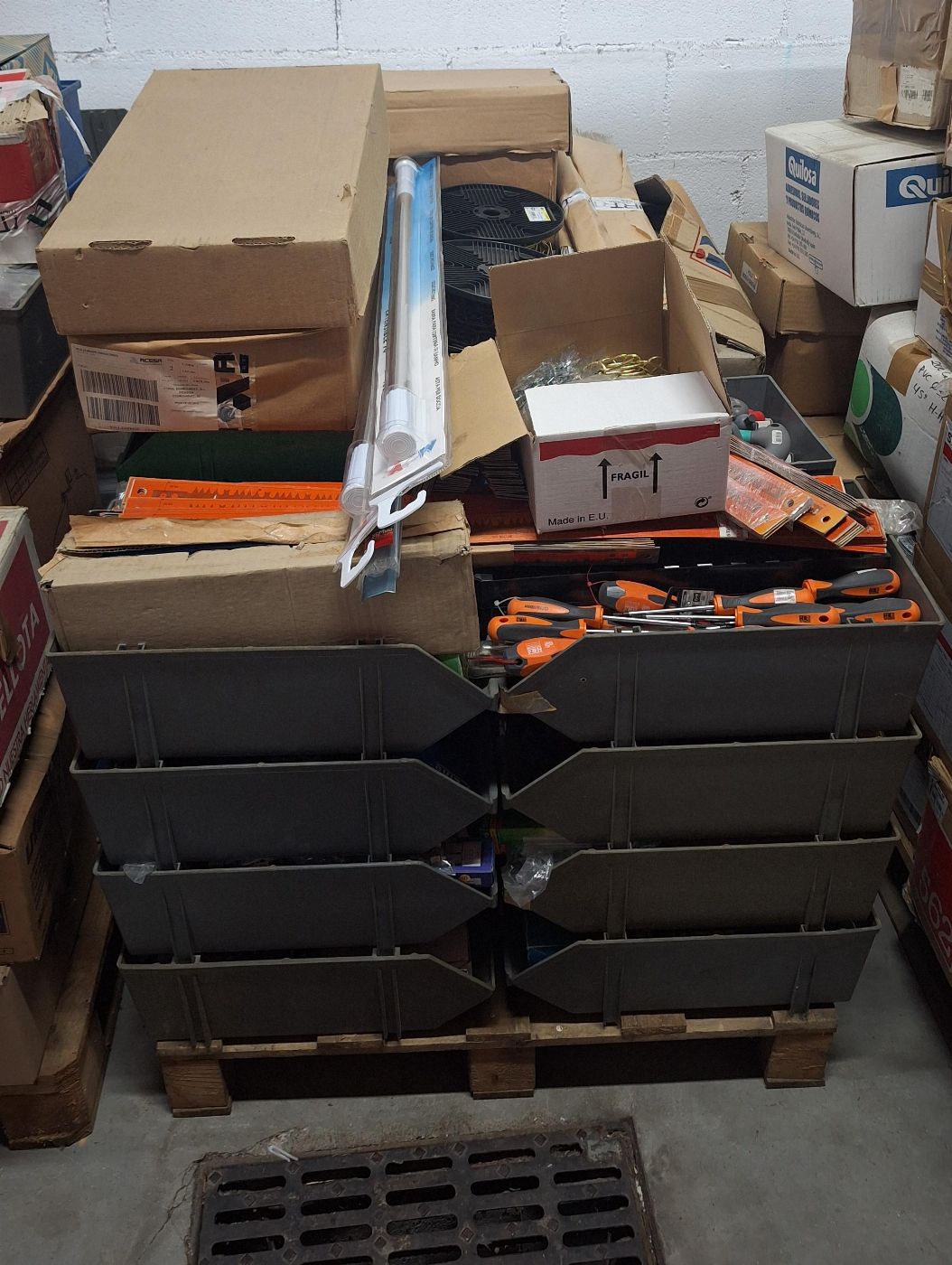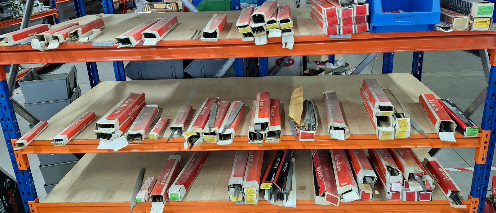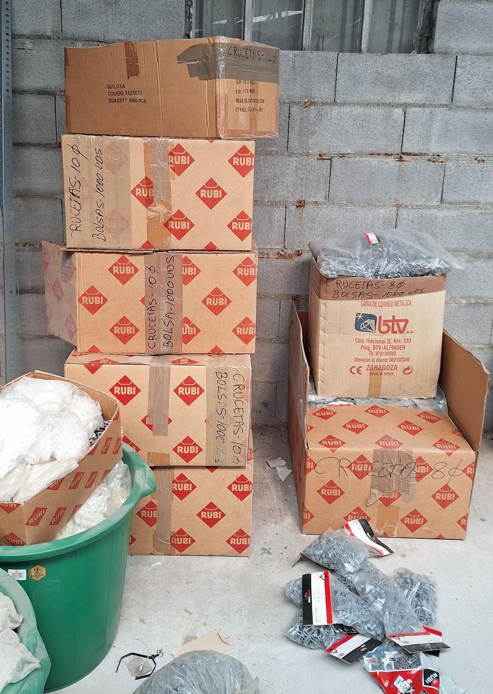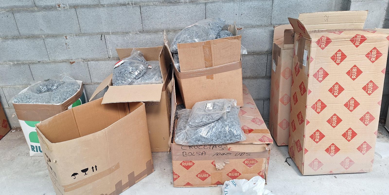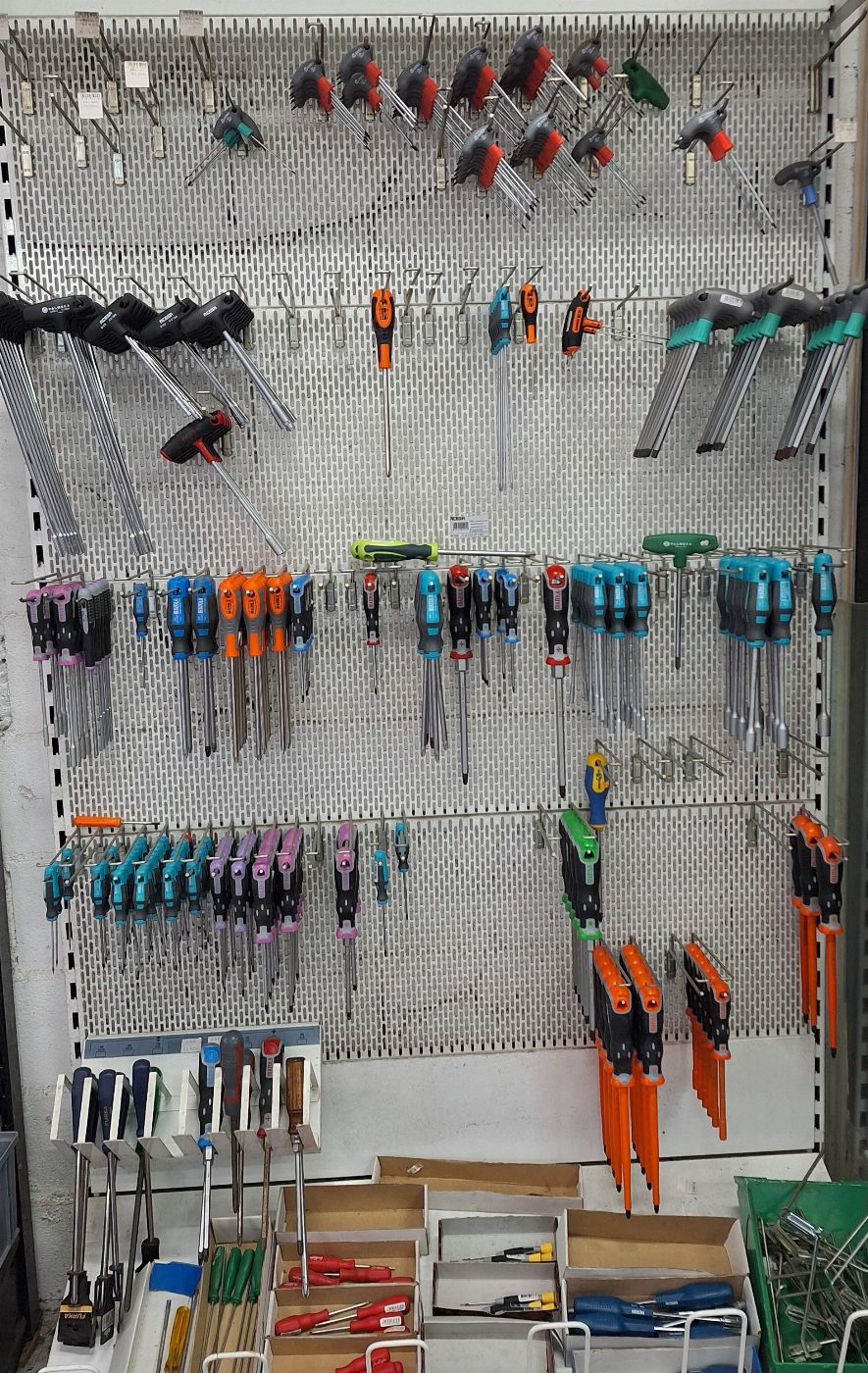 Változatos szerszámkészlet nylon, fém és vegyi dübelekkel, rögzítőkkel, feszítőkkel, karabínerrel, kábelrögzítőkkel, tűzőgéppel, szögekkel, csavarokkal, hegyekkel, kötelekkel és egyéb rögzítő és kötöző kiegészítőkkel.