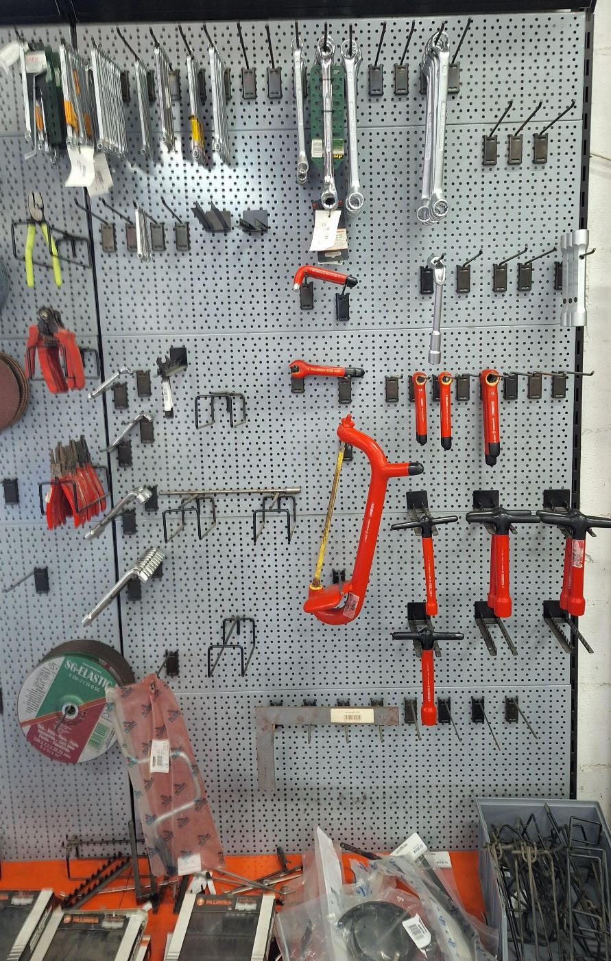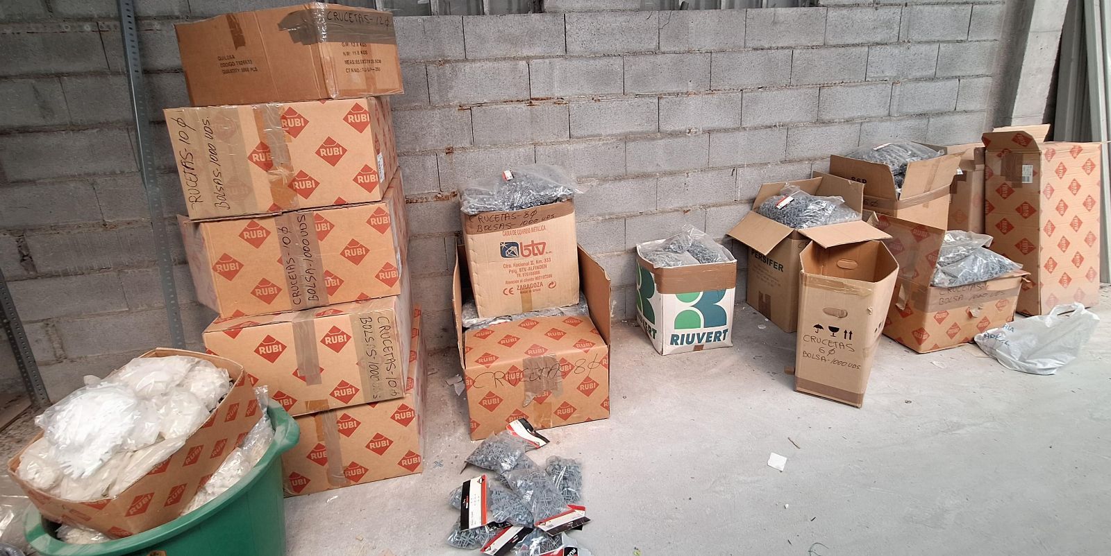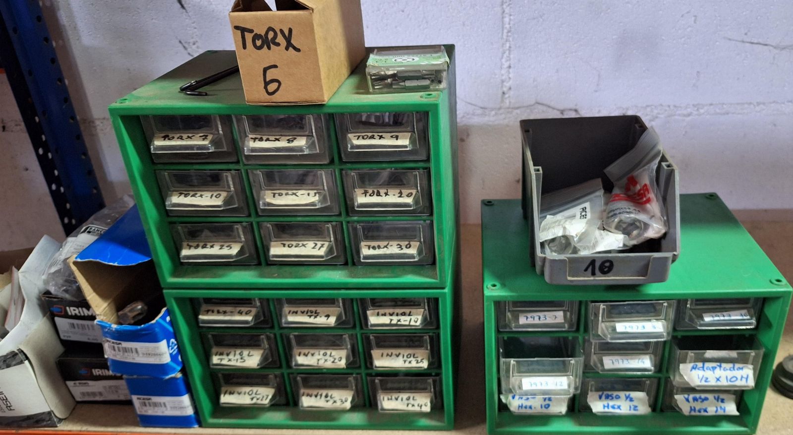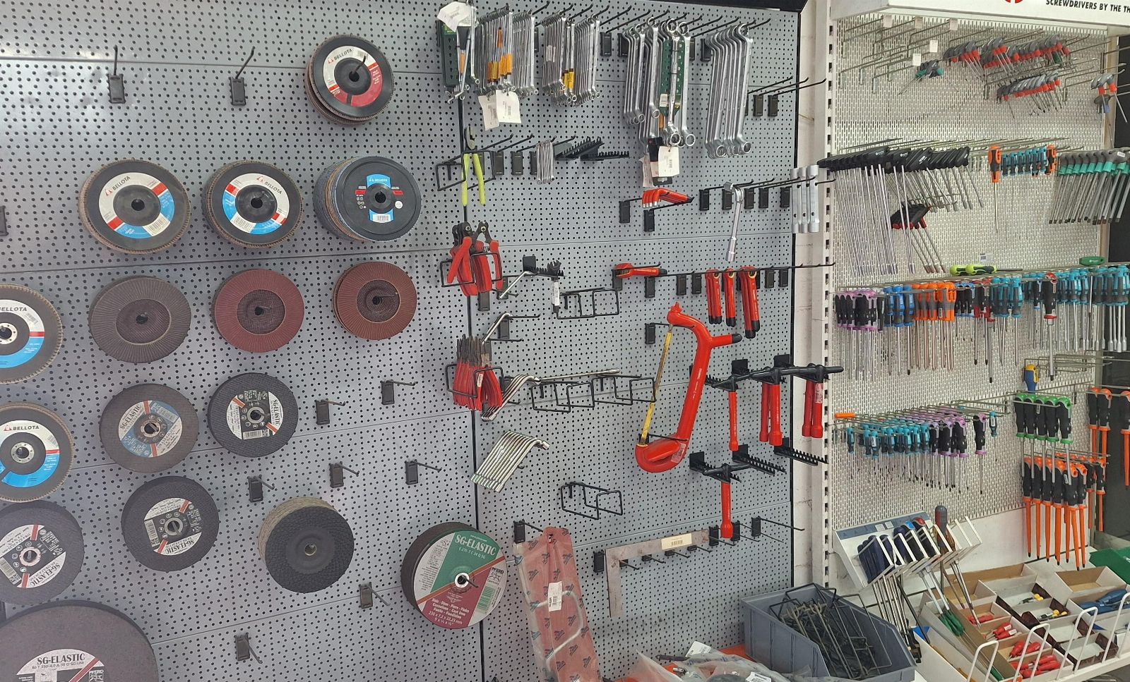 Változatos szerszámkészlet nylon, fém és vegyi dübelekkel, rögzítőkkel, feszítőkkel, karabínerrel, kábelrögzítőkkel, tűzőgéppel, szögekkel, csavarokkal, hegyekkel, kötelekkel és egyéb rögzítő és kötöző kiegészítőkkel.