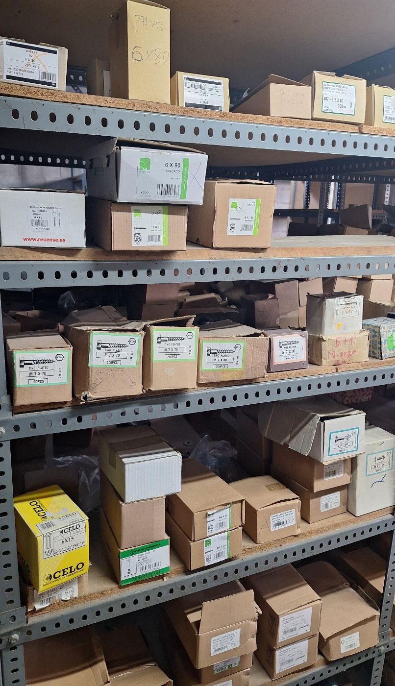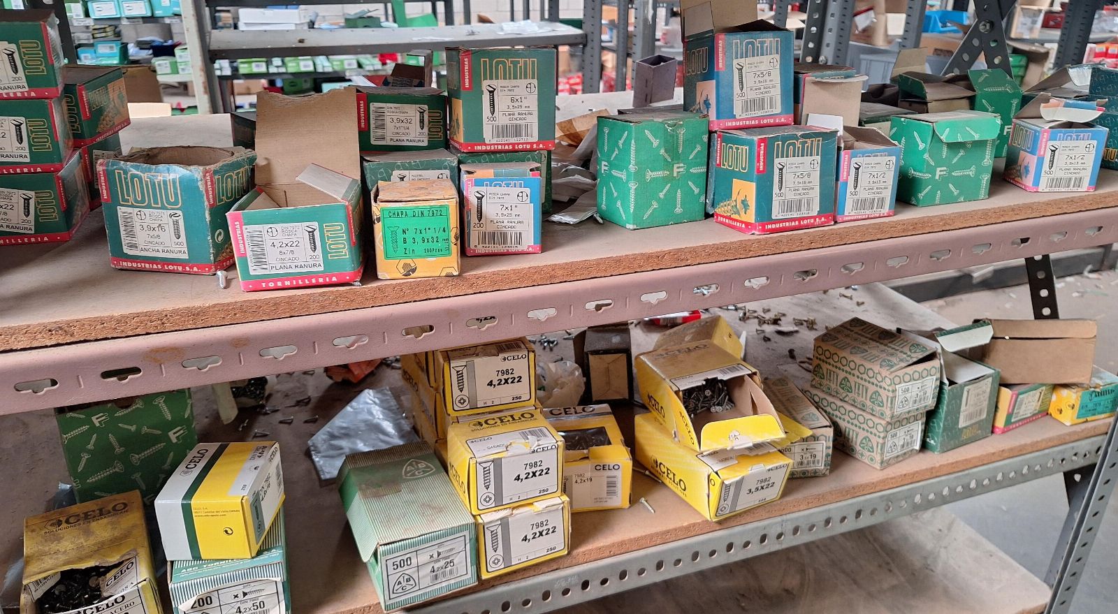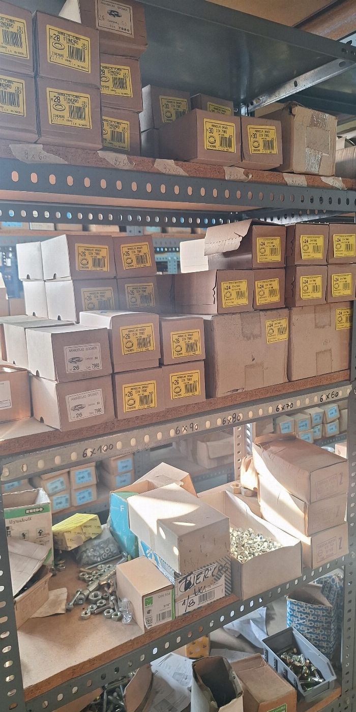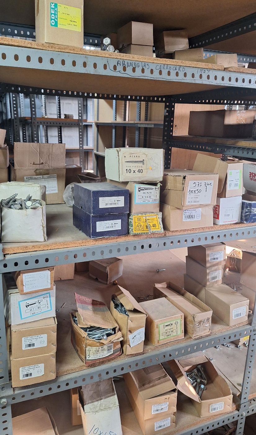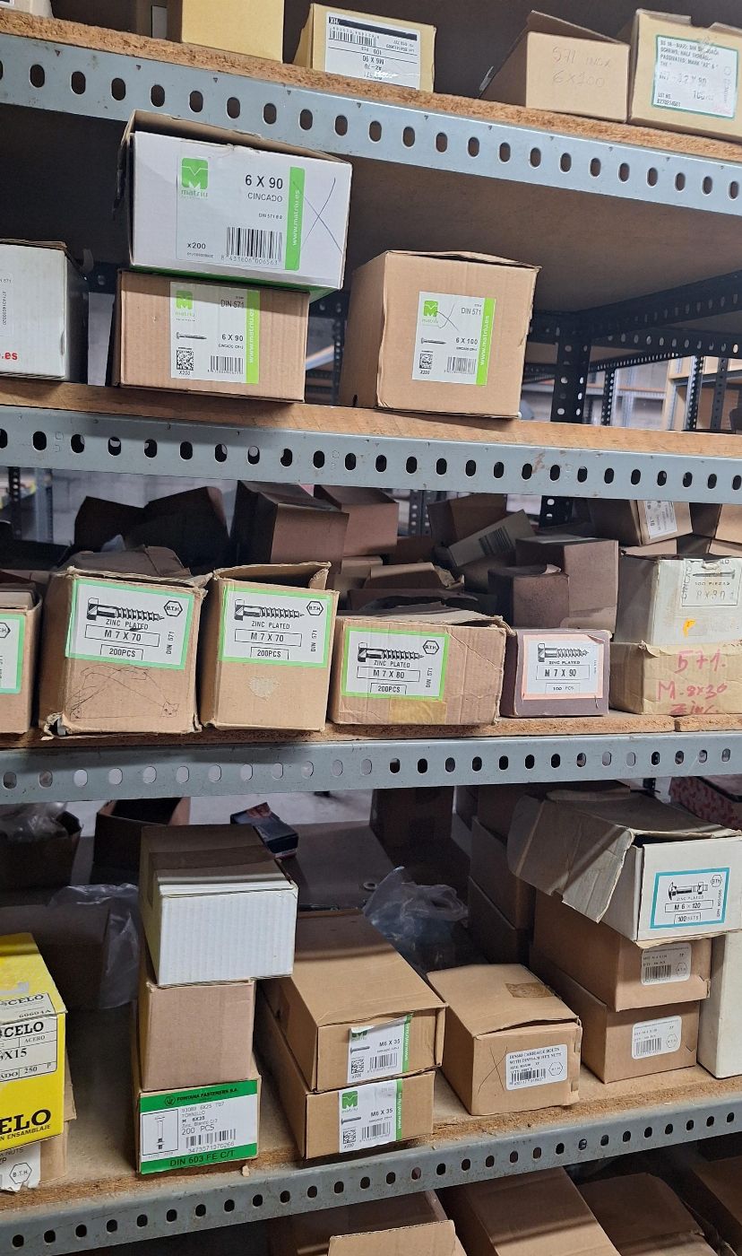 Széles választék rögzítőanyagokból, csavarokból és szerelvényekből: különböző méretű és típusú csavarok (fa menet, lemez, metrikus, rozsdamentes), alátétek, anyák, szárak, menetes rudak és összekötő elemek