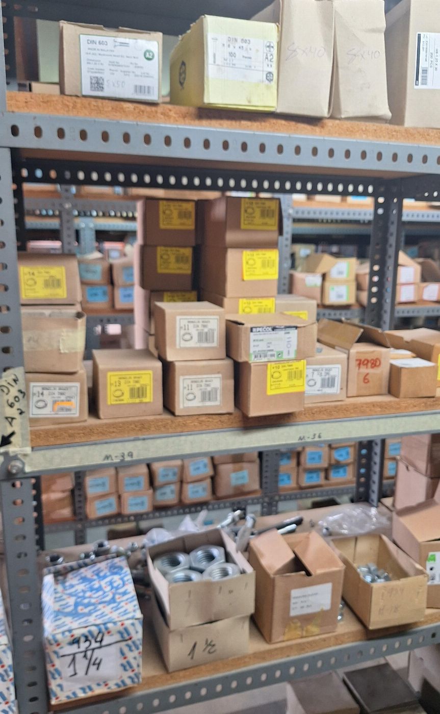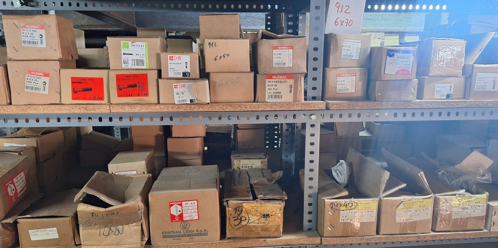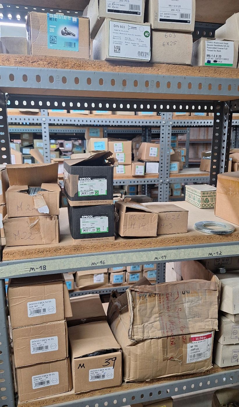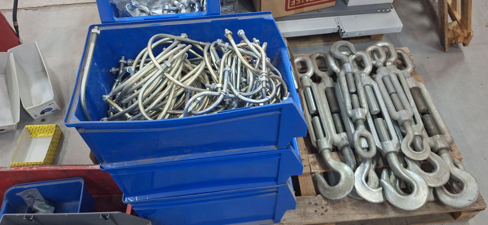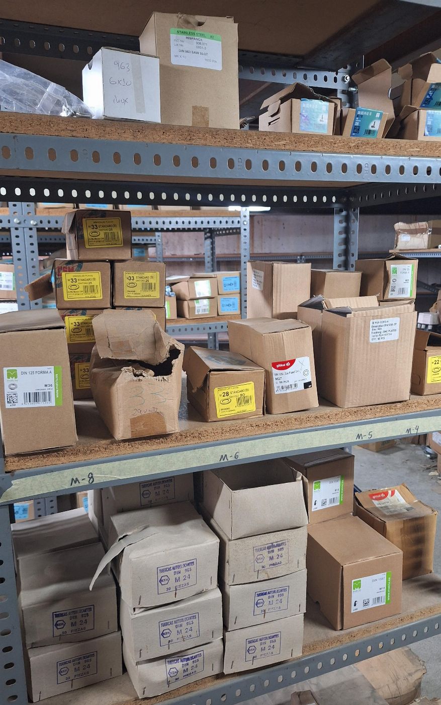 Széles választék rögzítőanyagokból, csavarokból és szerelvényekből: különböző méretű és típusú csavarok (fa menet, lemez, metrikus, rozsdamentes), alátétek, anyák, szárak, menetes rudak és összekötő elemek