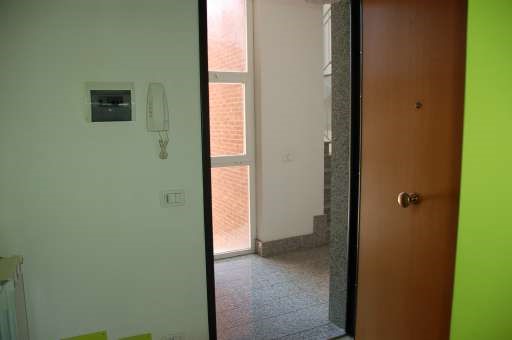 Aðgangur að byggingunni er beint frá Via Luigi Moretti, aðalframhliðinni, á meðan aðgangur að kjallara, sem er að aftan, er frá lítilli lóð með malbikuðu undirlagi. Aðgangur að byggingunni er í gegnum stóra ál- og glerhurð sem leiðir inn í sameiginlega stigaganginn.