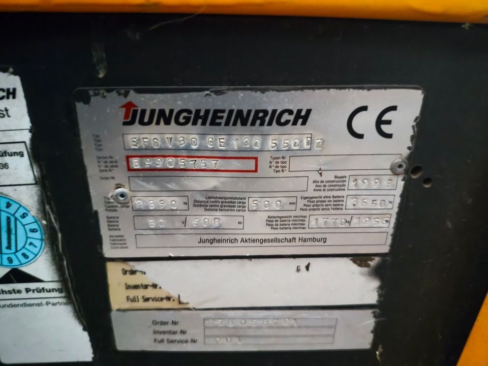 n. 1 Carrello Elevatore Jungheinrich v Jungheinrich mod. efgv30 ge 120, anno 1998 - rif. 2