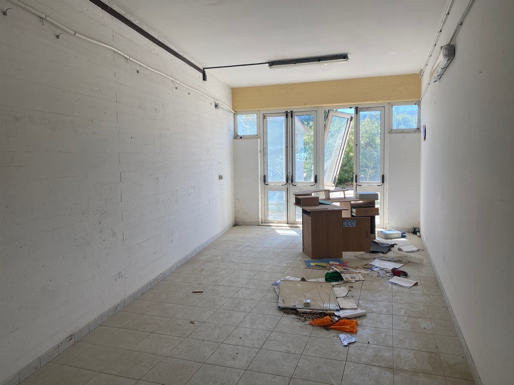 L’area esterna di pertinenza si presenta prevalentemente asfaltata, con una modesta sistemazione a verde e dotata di impianto di illuminazione su pali con lampioni.