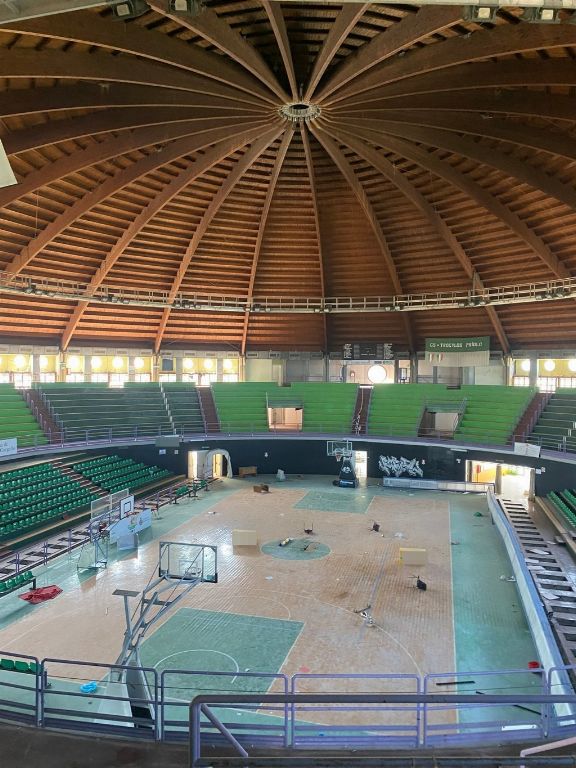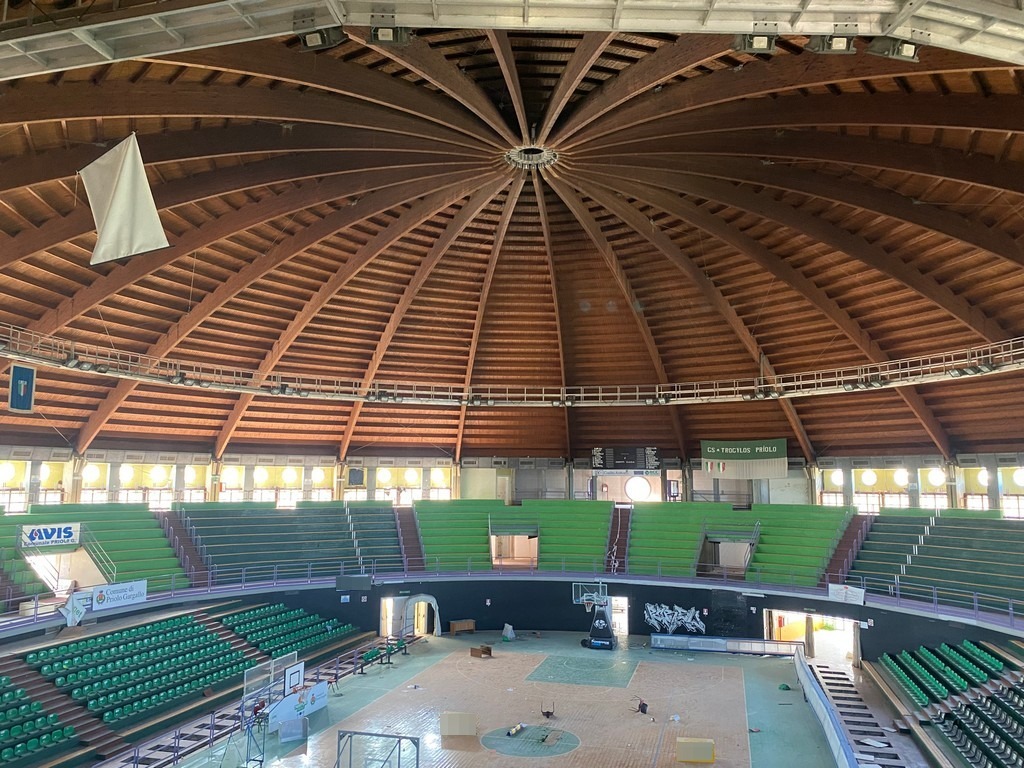 Il palazzetto ha una superficie coperta di circa 3.900 mq, con pianta prevalentemente circolare del diametro di 62 mt, gradinate concentriche e cupola di copertura con altezza all’imposta di 11,60 mt e alla chiave di volta di 22,60 mt. Il volume complessivo è di circa 56.000 mc.