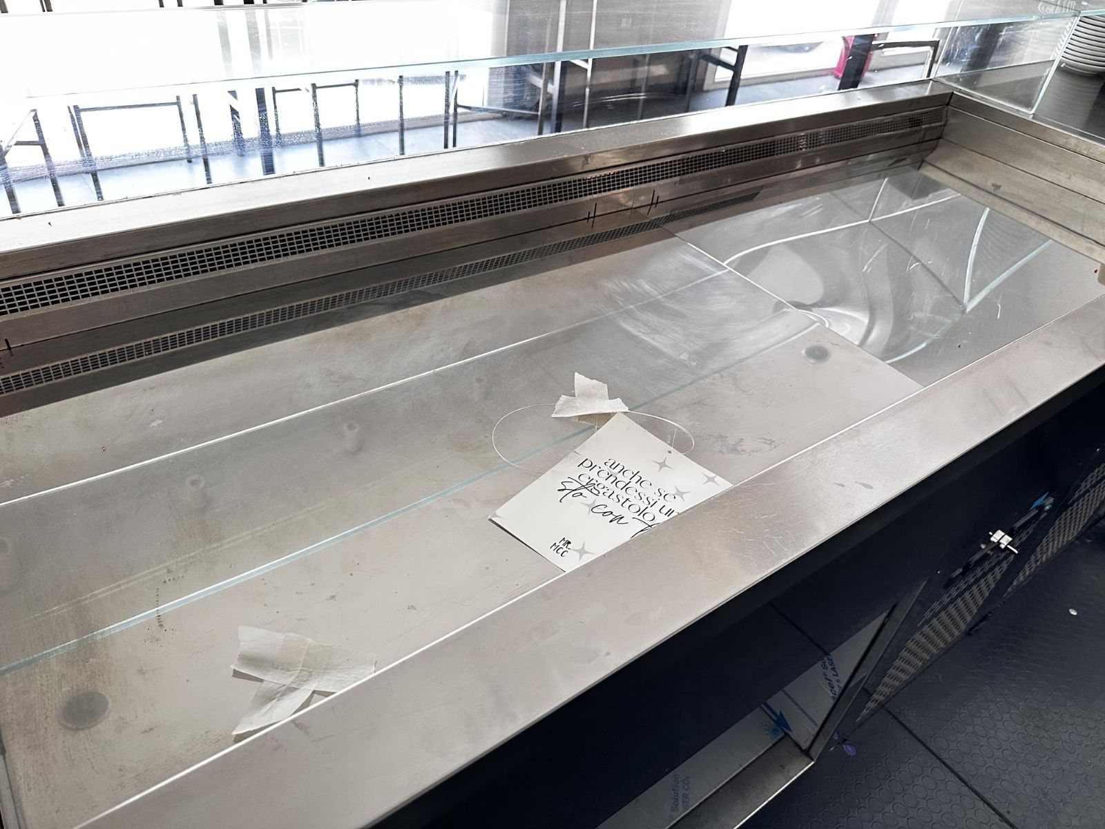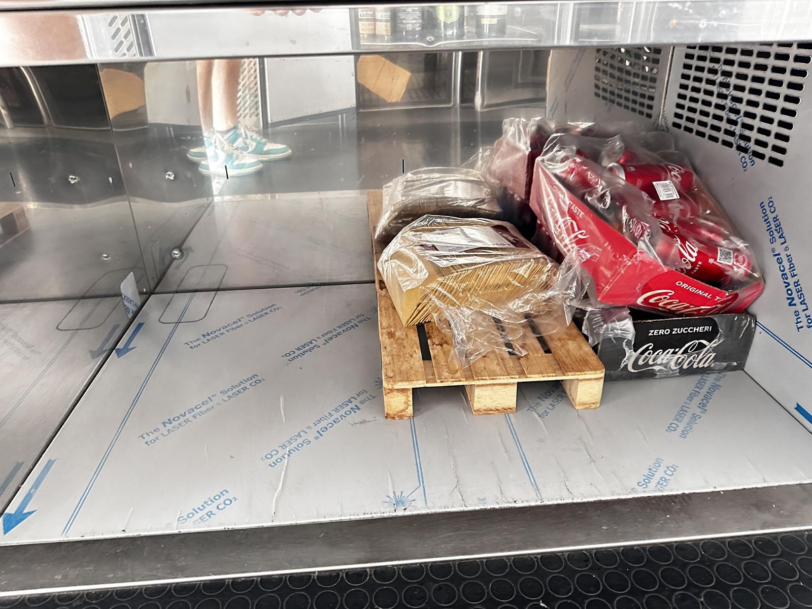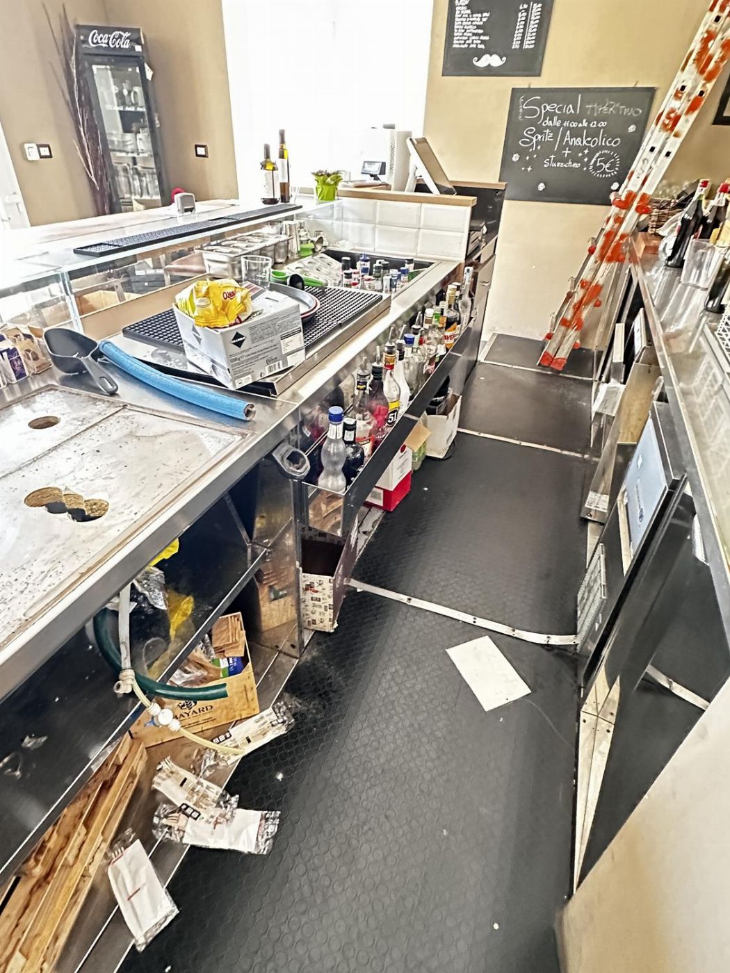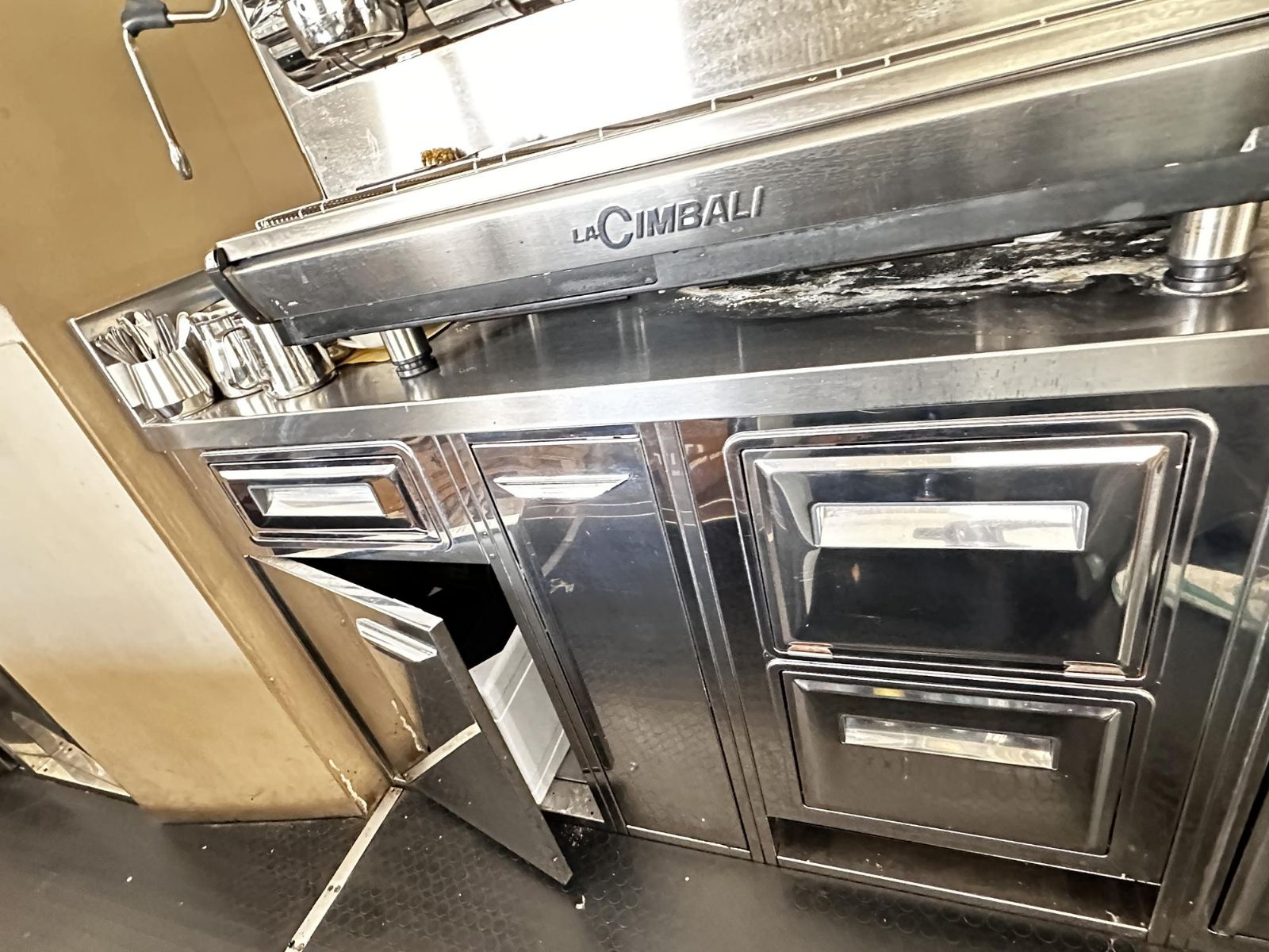 Arredo bancone bar in legno tipo rovere costituito da: vetrina riscatdante per alimenti marca MANCINELLI ELIO modello DROP-IN 2000+CnLDO anno 2019, banco refrigerato con n. 2 ante battenti e n. 2 vani giorno marca MANCINELLI ELIO modello CELLA 2 V. anno 2019, banco con n. 2 vani a giorno, mensola porta bottiglie e vasca, dimensioni complessive circa m 6x0,8x1,2. Vetro bancone costituito da n. 1 banco refrigerato in acciaio inox con n. 6 ante battenti e n. 4 cassetti marca MANCINELLI ELIO modello CELLA 3 V. anno 2019 dimensioni circa m 3x0,6x1 e n. 1 banco armadiato in acciaio inox con n. l anta battente, n. 2 vani giorno, n. 2 ante scorrevoli, lavello ad una vasca dimensioni circa m 3x0,6x1, n. 2 scaffalature a parete in metallo nero con n. 3 ripiani in legno - rif. 36