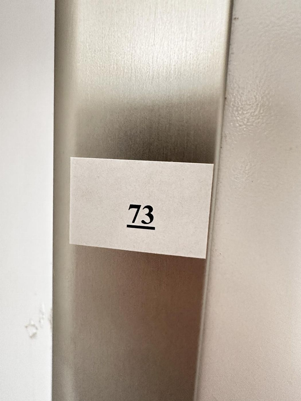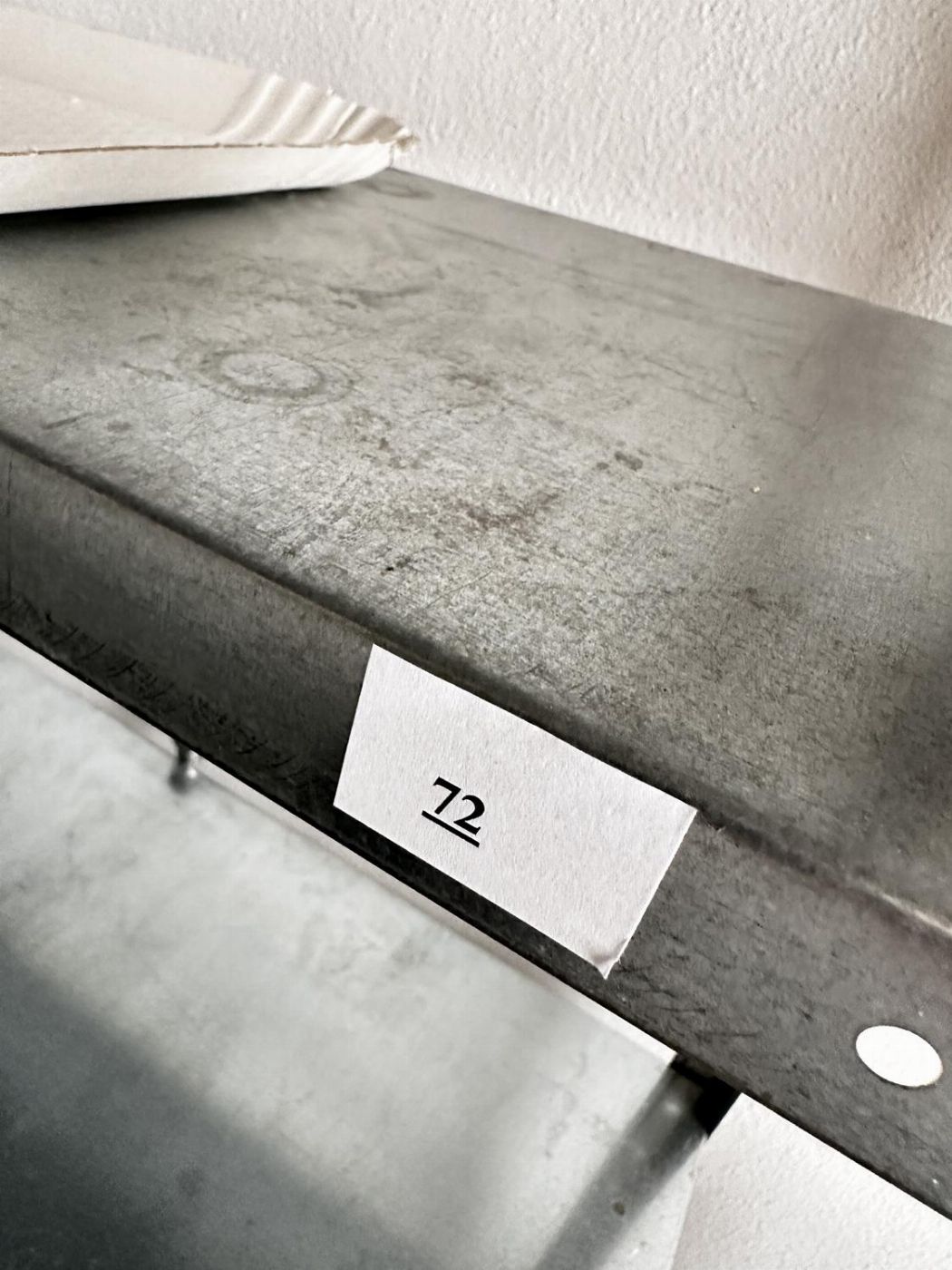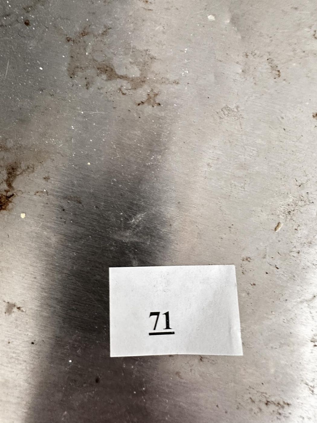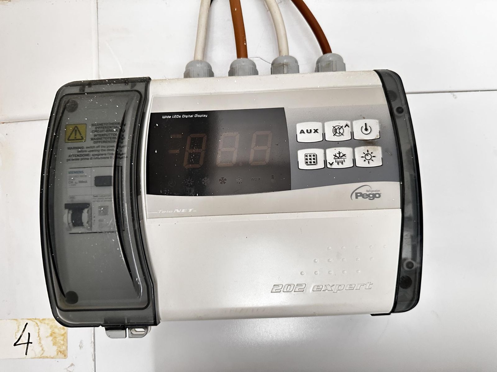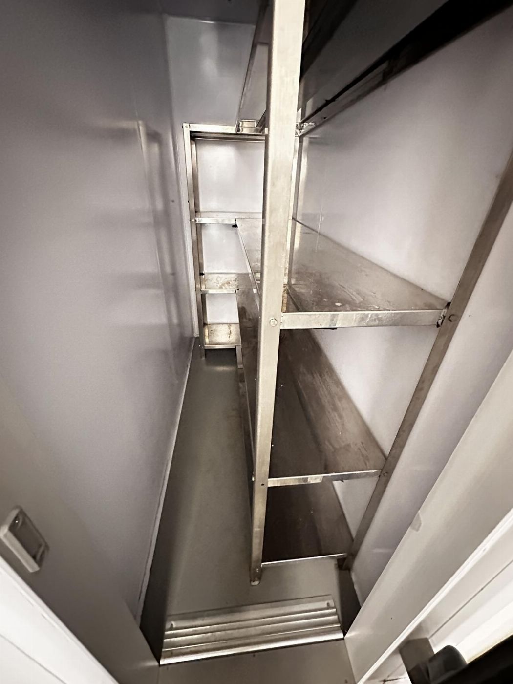 Cella frigorifera ad un anta battente con all'interno n. 2 scaffalature in acciaio inox, unità refrigerante marca RIVACOLD modello ERLI40Z6112 posizionata all'esterno - rif. 73