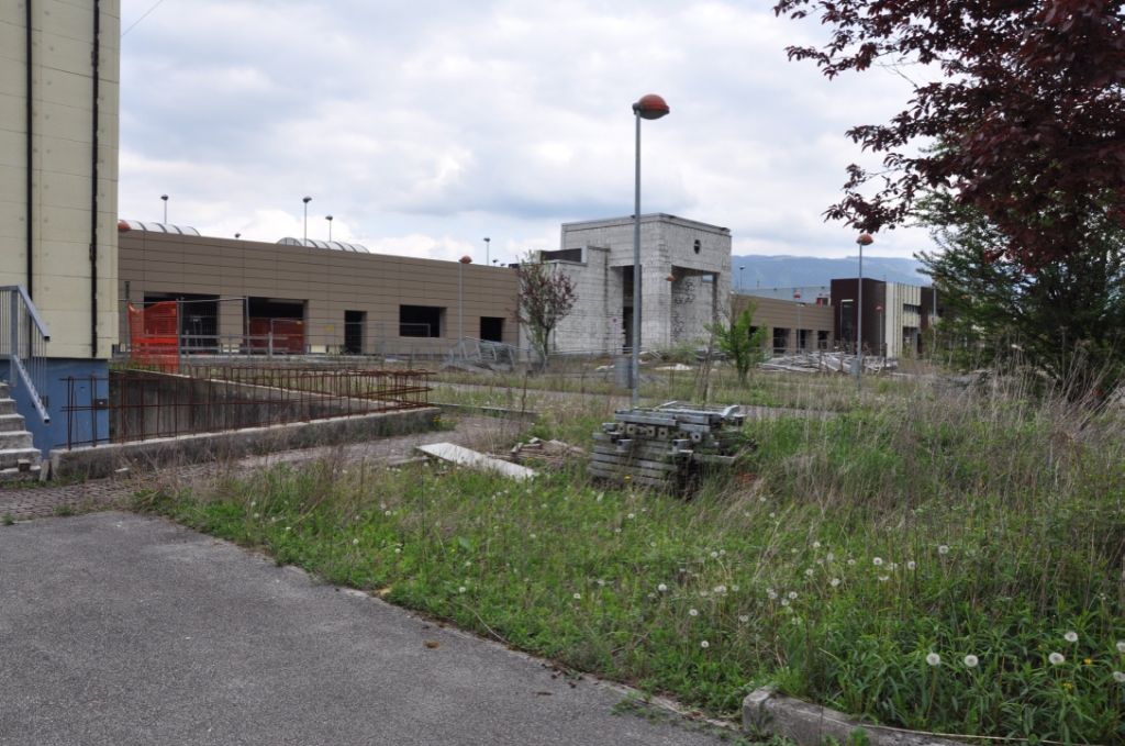 Il fabbricato sviluppato su due piani fuori terra, con copertura praticabile adibita a parcheggio, circondato dall'area scoperta destinata a viabilità e parcheggio è attualmente incompiuto.