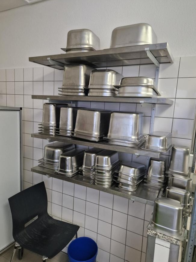 n. 3 mensole in acciaio, completa di vasche, misure 80X35