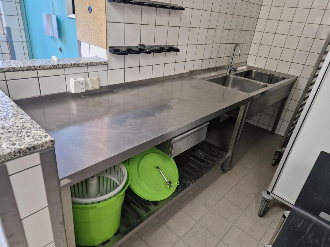 banco lavoro completo di lavabo con 2 vasche, misure 311X70X84h