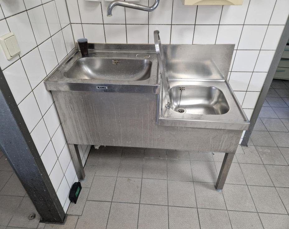 lavello piccolo 2 vasche, completo di supporti, misure 113X50X70h