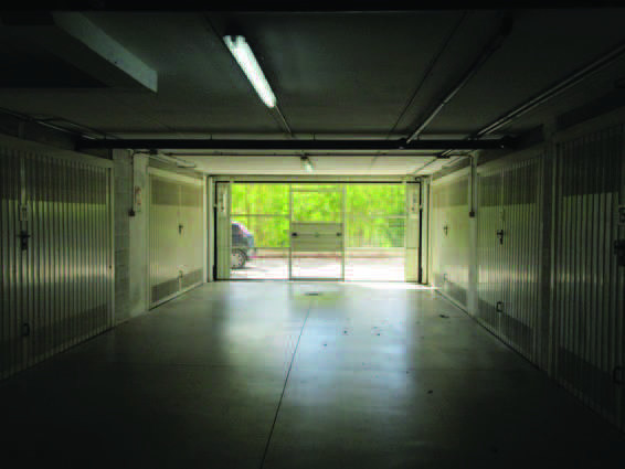 La serranda di accesso, ad anta singola con apertura basculante manuale, è in metallo con griglia anch’essa metallica.