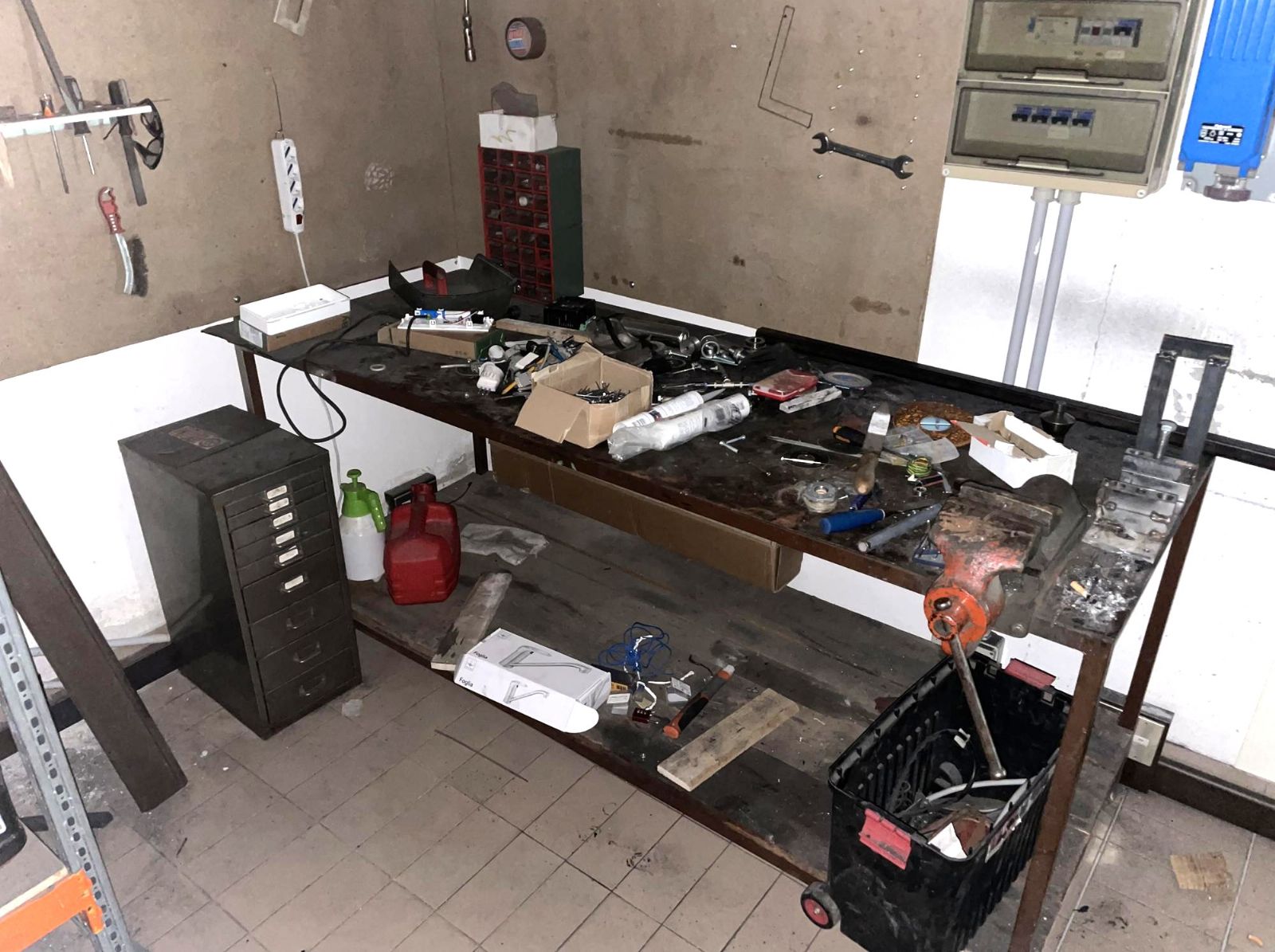n. 1 banco lavoro in ferro con morsa e attrezzi manuali