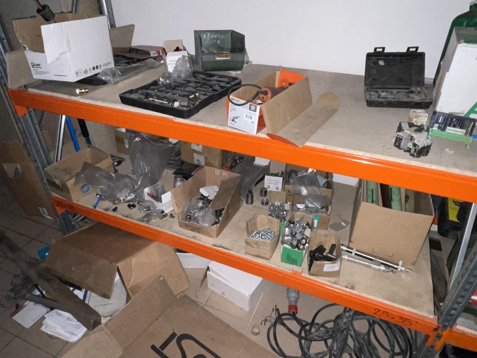 n. 4 scaffale pesante a 3 ripiani h 200cm con ricambi ed accessori vari