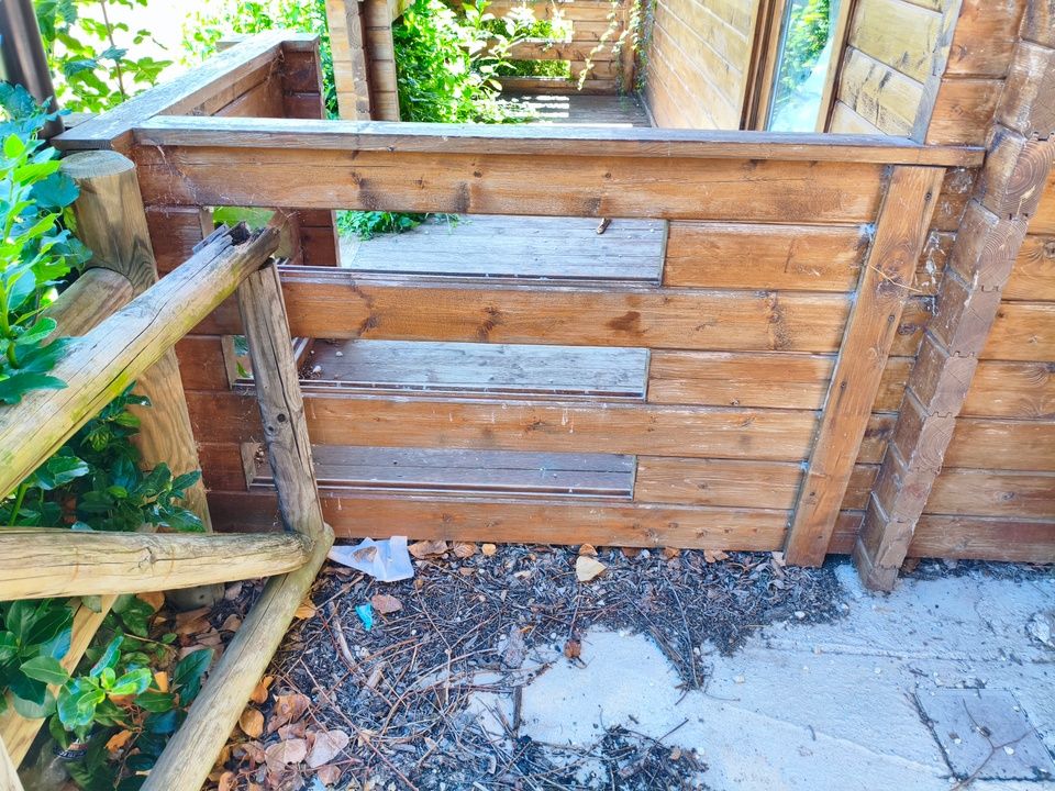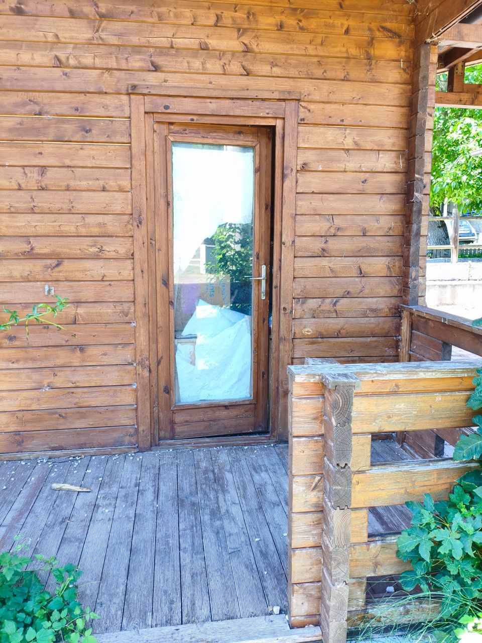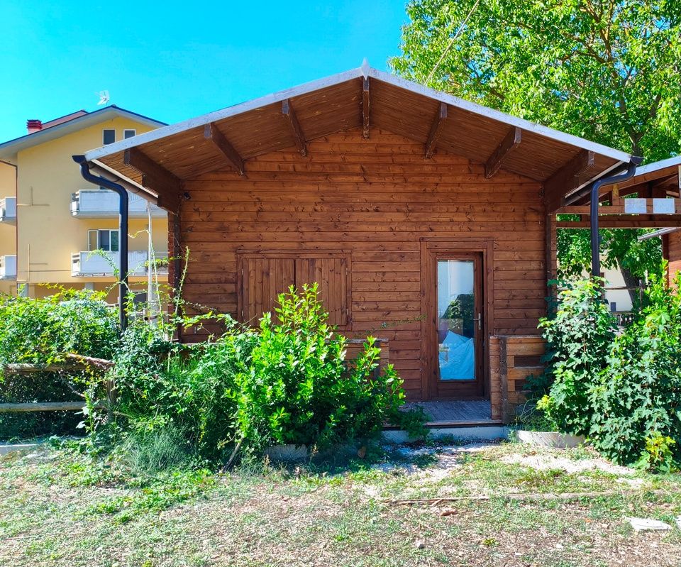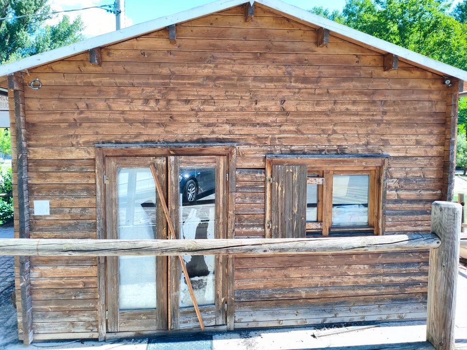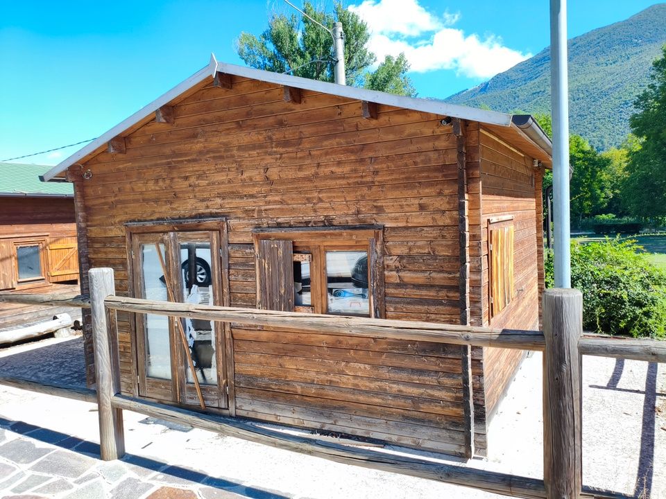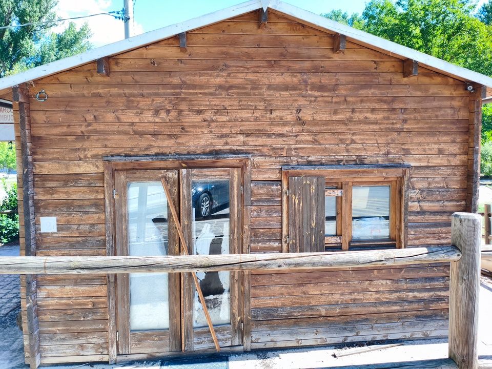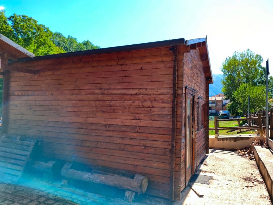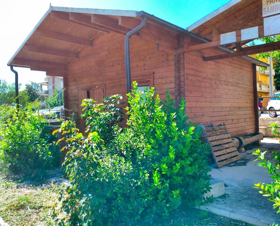 n. 1 Casetta in legno misure 5 metri x 5 metri x 3.50 metri altezza nel punto più alto, doppia entrata - rif. 14