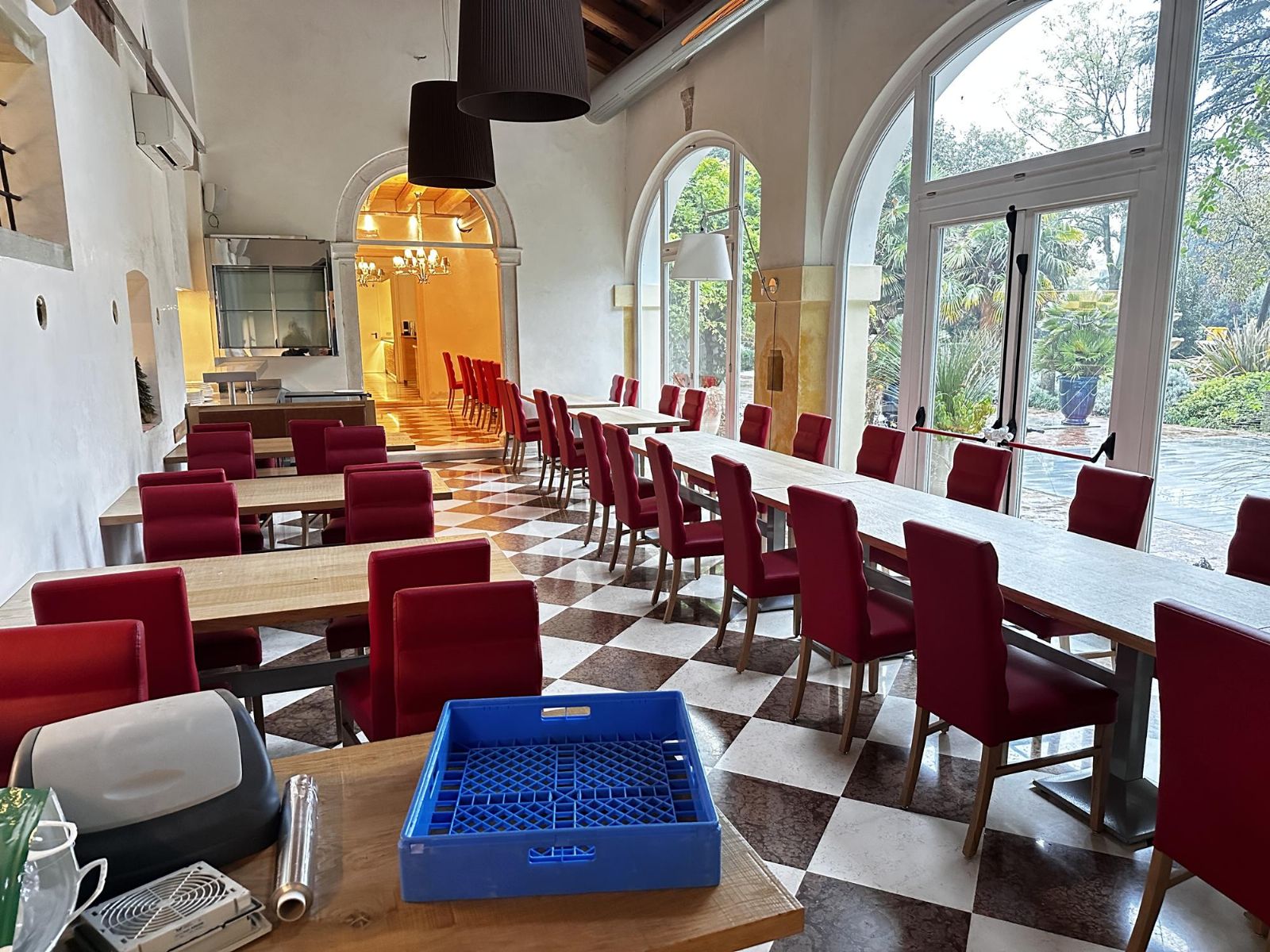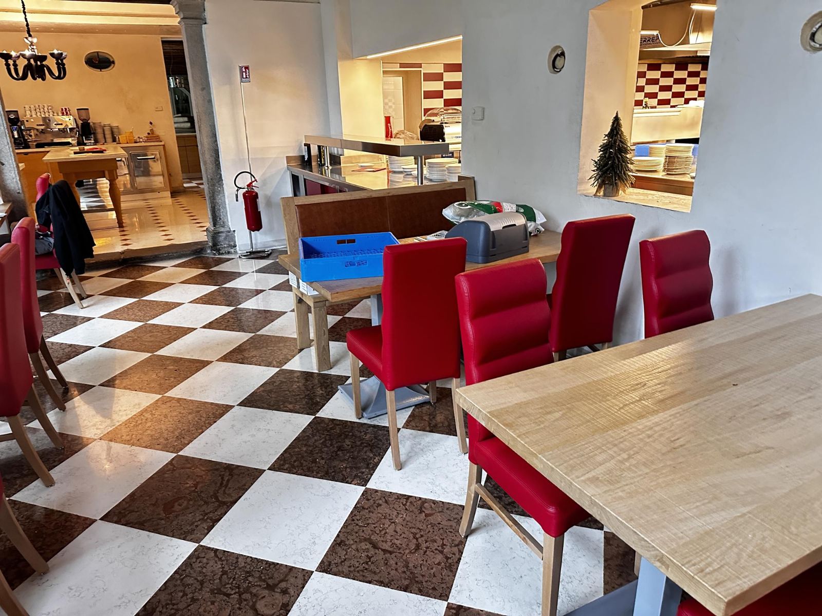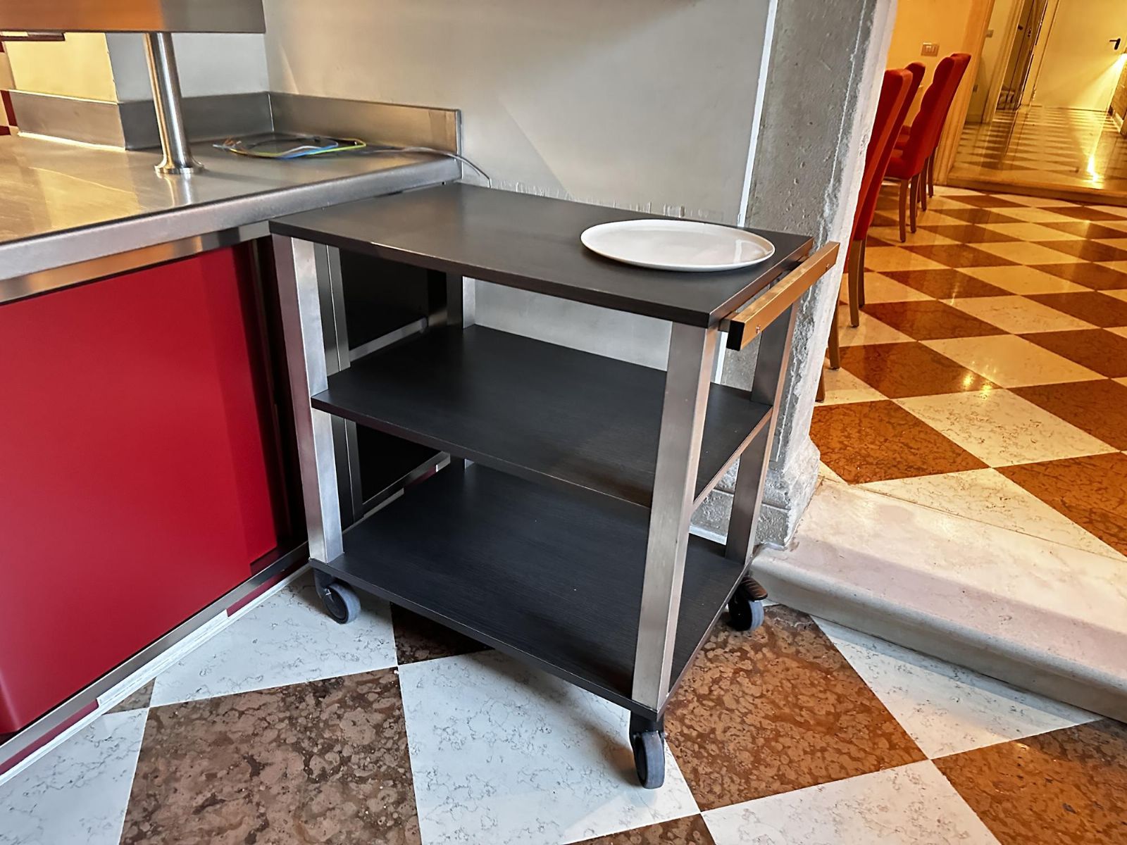 n. 1 Carèll de serviz per sala cun struttura in acciaio inox e n. 3 ripiani in laminat ner marca PINTI BUFFET dimension circa cm 85x55x90