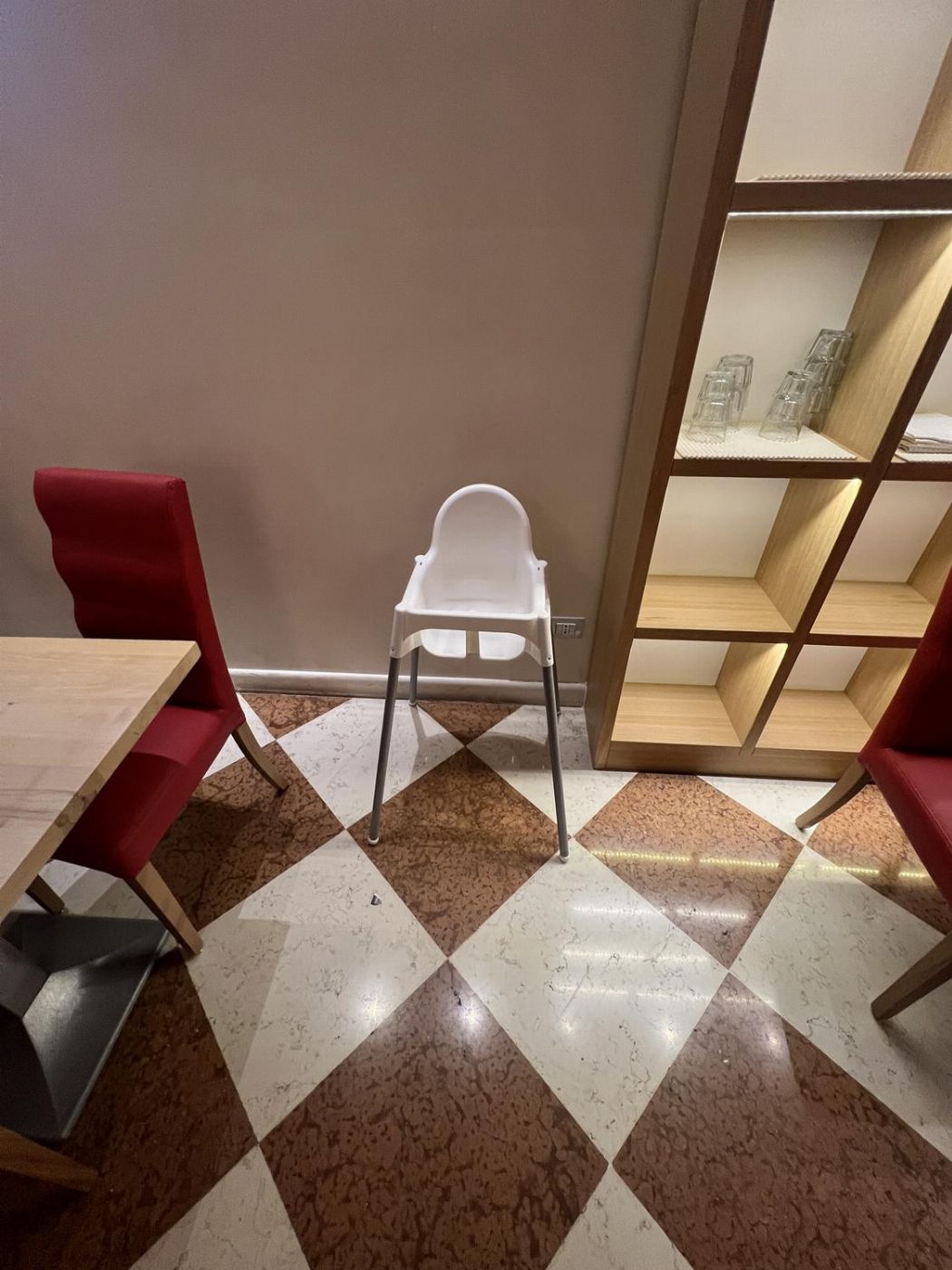 n. 43 Sedia imbottida cun struttura in legn tip rovere natural e seduta imbottida in similpelle rossa
