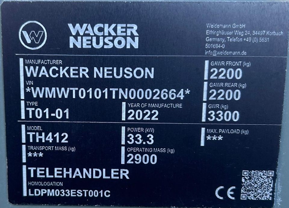 n. 1 sollevador telescopich Wacker Neuson mod. TH412, ann 2022