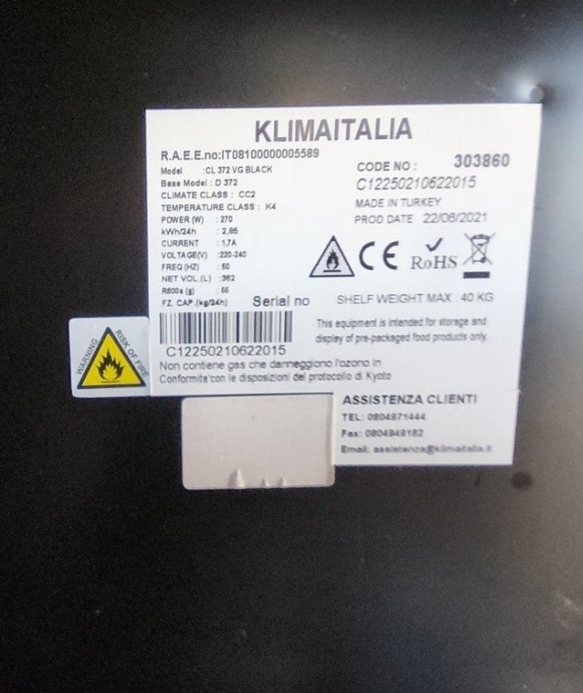 n. 1 Klimaitalia display case fridge mod. CL372 vg Black, year 2021, matr. C12250210622015 - ref. 8
