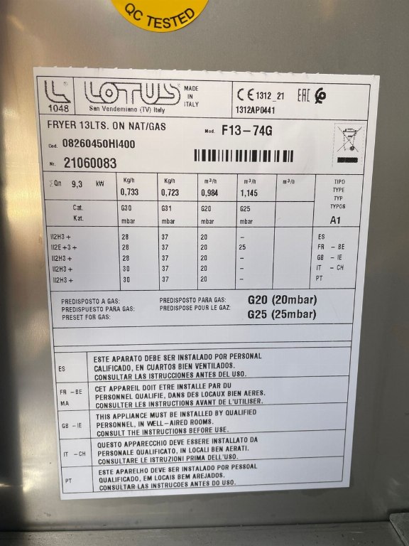 n. 1 Lotus methane gas fryer mod. F13-74G, year 2021, matr. 21060083 - ref. 6