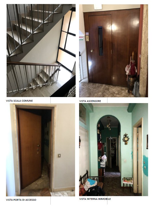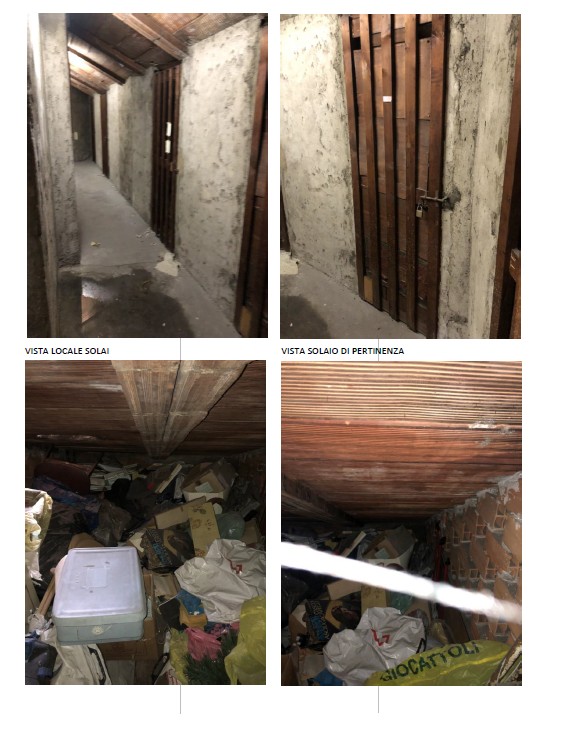Descrizione (IT)appartamento ad uso abitazione, posto al piano primo, composto da corridoio di ingresso, un locale pranzo, un cucinino, un piccolo vano uso ripostiglio/disimpegno tra il cucinino ed il corridoio, un bagno finestrato, un ripostiglio, altri due locali (adibiti a camera e locale giorno) e due balconi, oltre vano di cantina pertinenziale al piano interrato e solaio al piano quinto