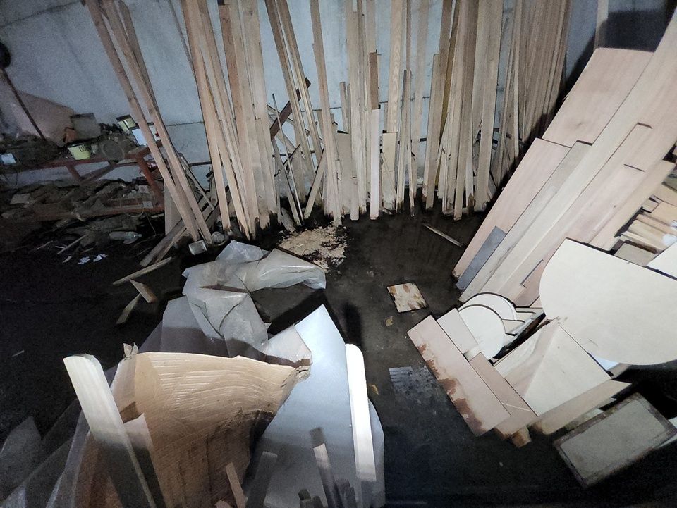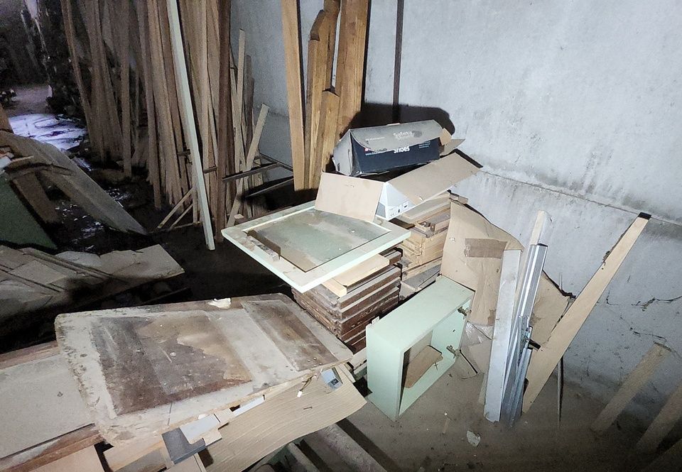 Materiale i dårlig tilstand og stablet