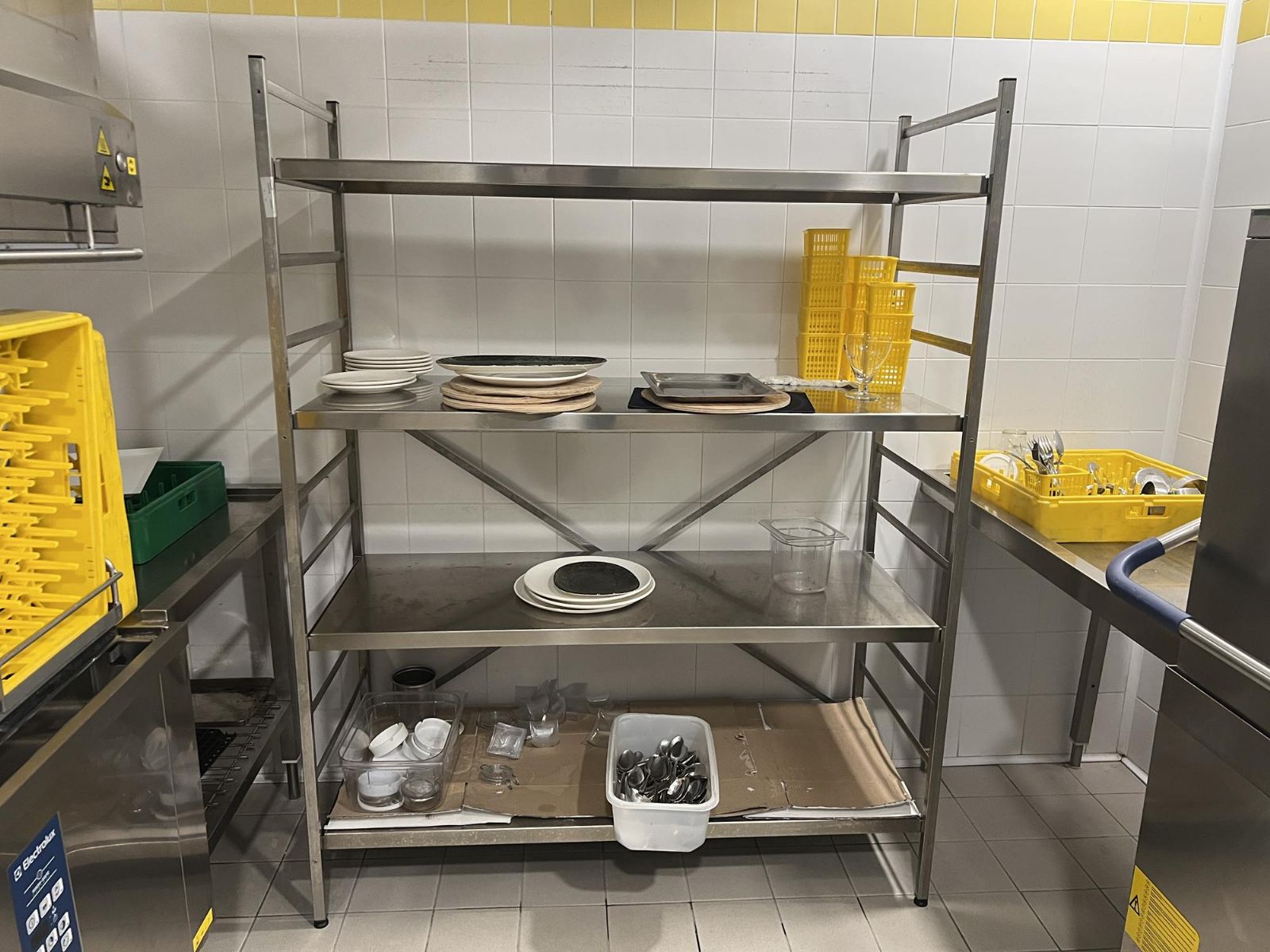 n. 1 Raft din oțel inoxidabil cu n. 2 stâlpi și n. 4 rafturi de dimensiuni aproximative cm 150x45x180