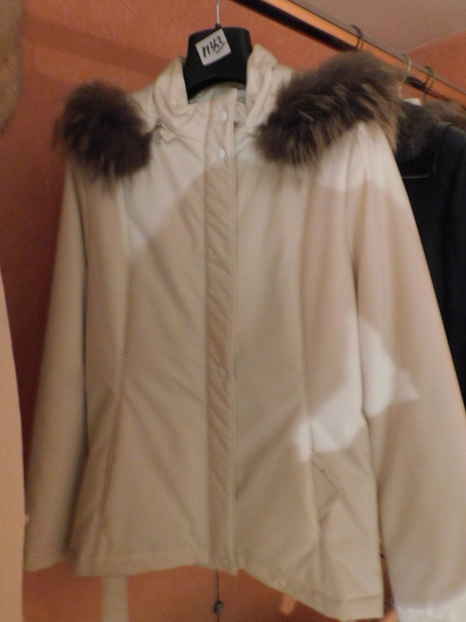 č. 1 bunda z tkaniny s golierom z racoon bisquit - ref. M342