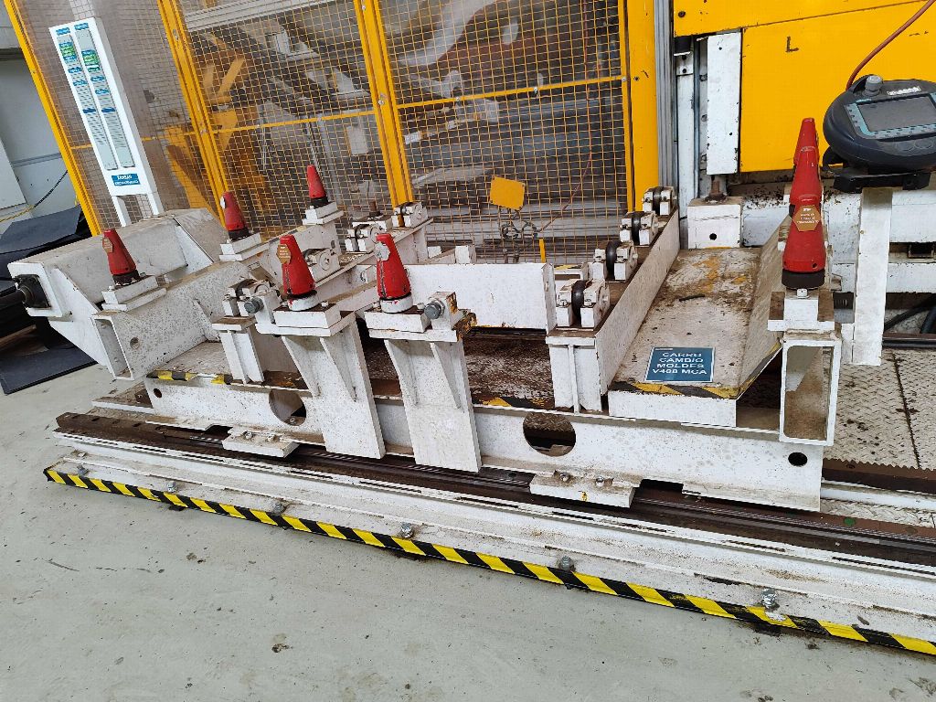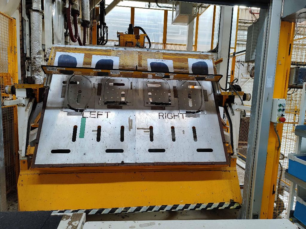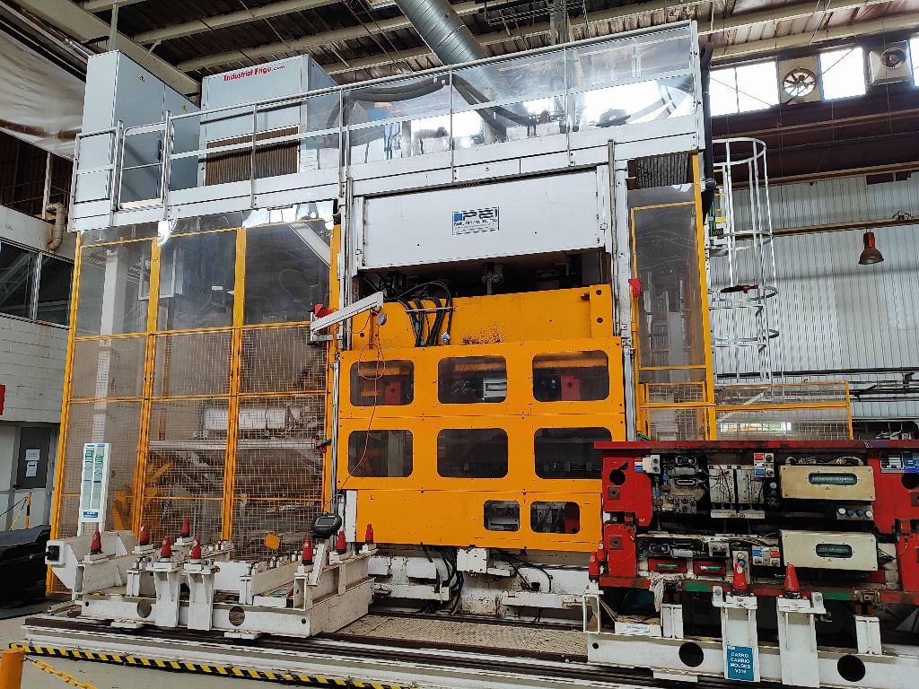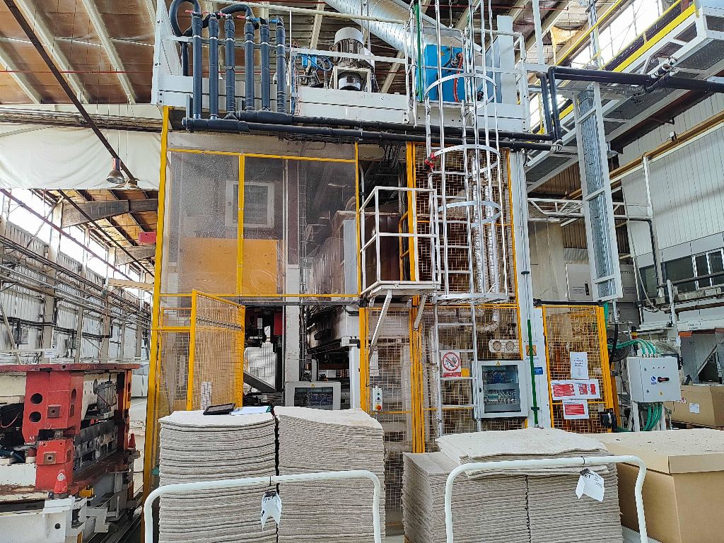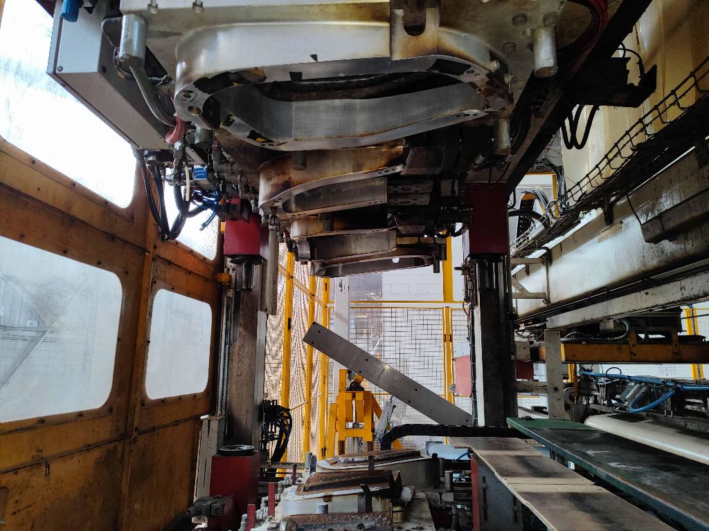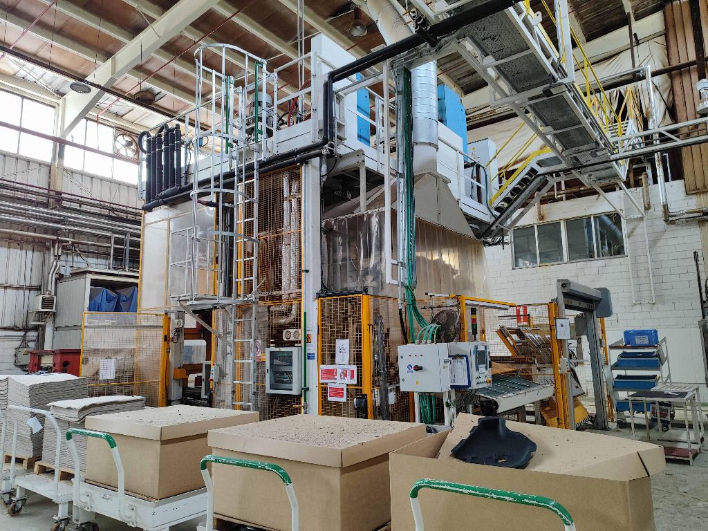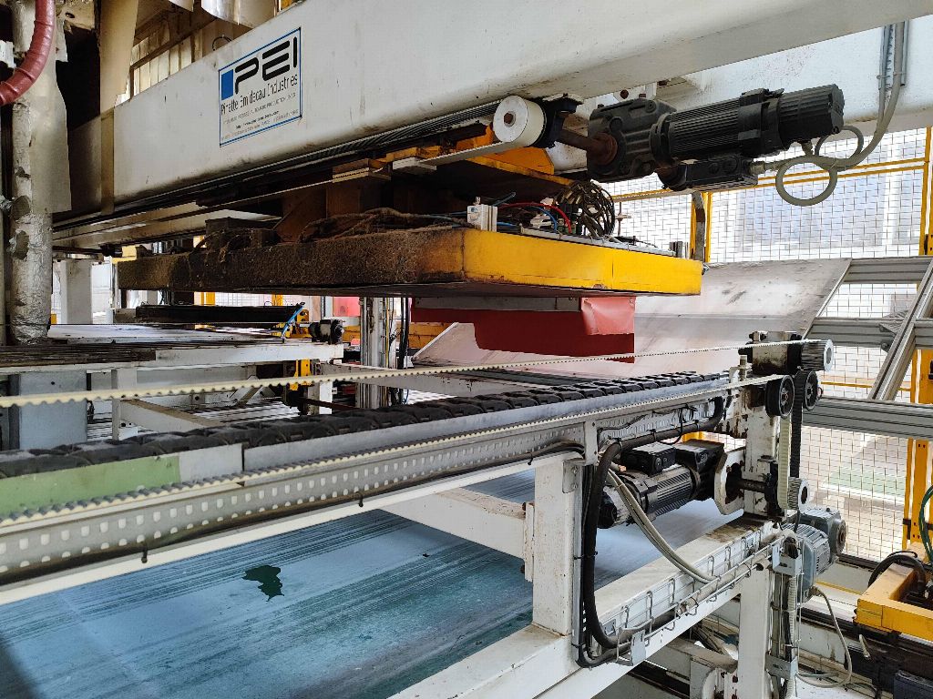 NFPP termoformaj hattı LP01, PEI PINETTE markası ONESHOT 1 presi, no: 61983A, kapasite 150 Tm, güç 293 Kw, yıl 2013, sıcak kalibrasyon presi, 2 hızlı kalıp değiştirme aracı, soğutma ekipmanı.