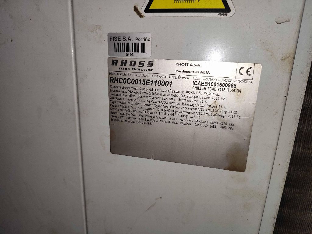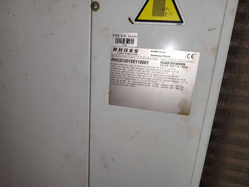 RHOSS kalıp soğutma ekipmanı no: RHC0C0015E110001, güç 15 Kw.